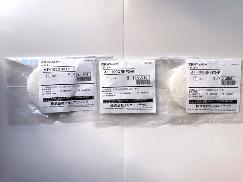【送料込み」メルコエアテック 交換用フィルター レジスター 新品3枚セット / 吸気口フィルター AT-100QRKF3-F