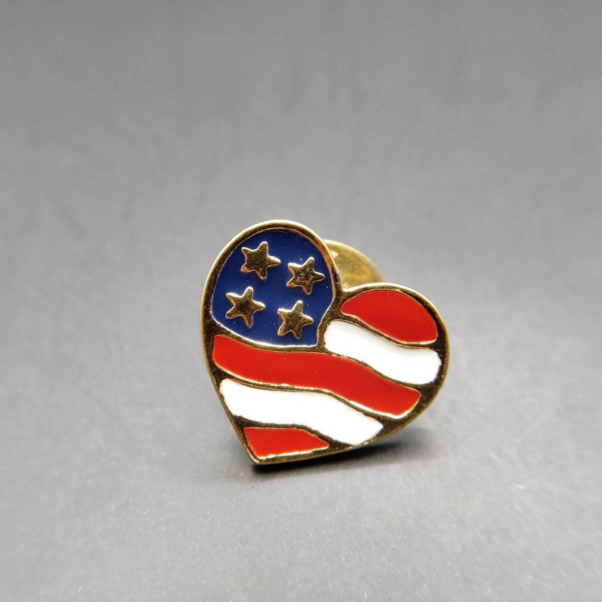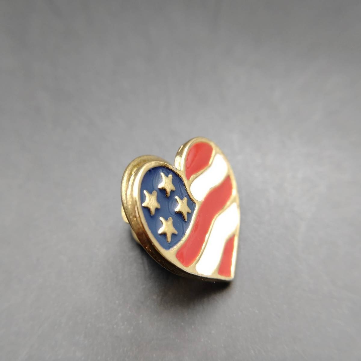 2001年 USA製 AVON ハート アメリカ 国旗 ビンテージ ピン ブローチ アールデコ 昭和レトロ コスチューム ジュエリー YMV④9
