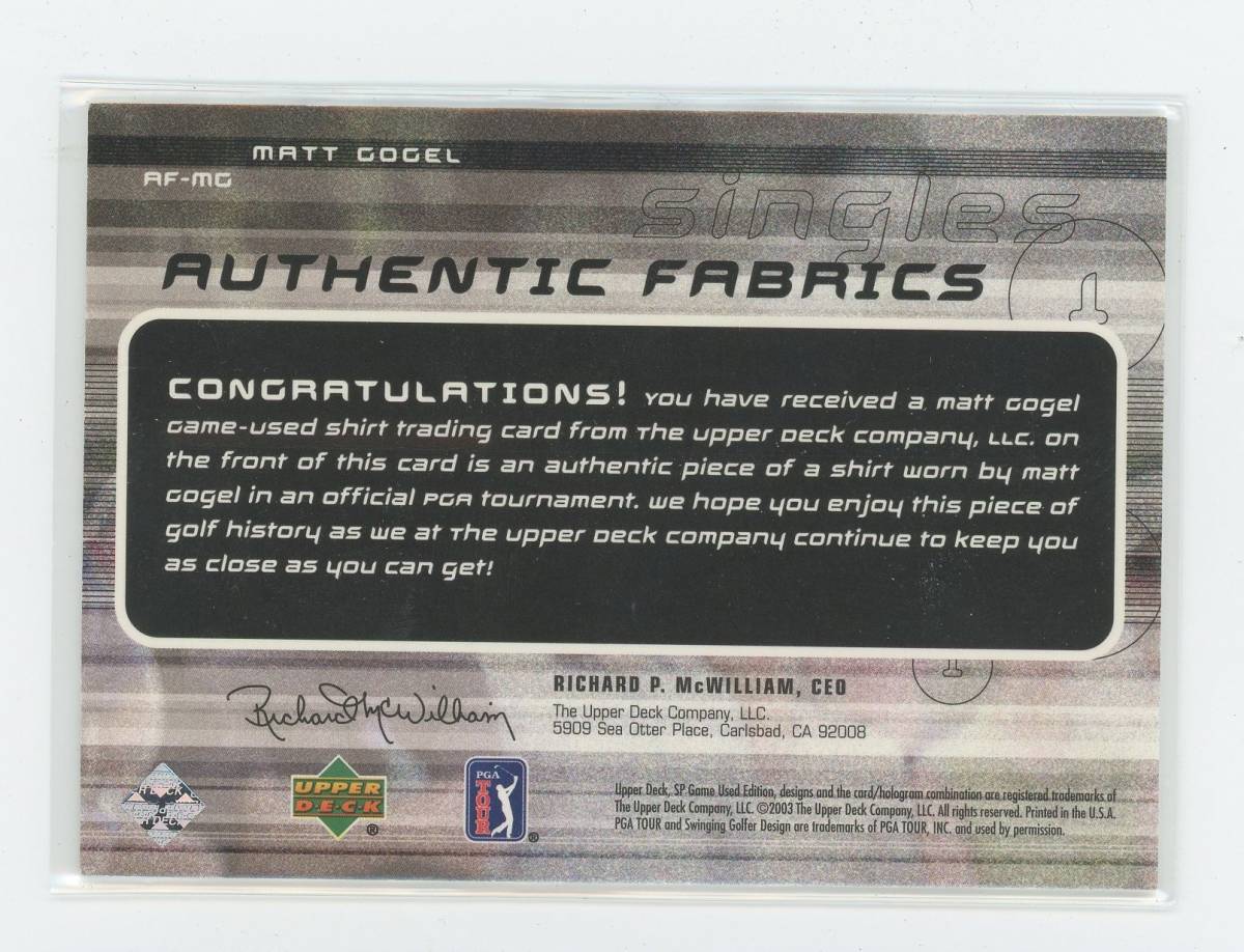 【MATT GOGEL】GOLF 2003 SP Game Used Authentic Fabrics Singles