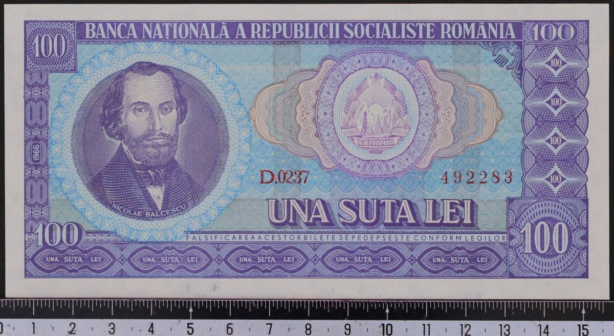 外国紙幣 ルーマニア 1966年 P97 未使用 100レウ