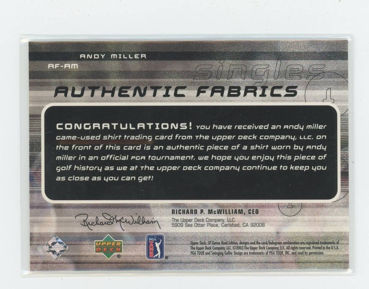 【ANDY MILLER】GOLF 2003 SP Game Used Authentic Fabrics Singles