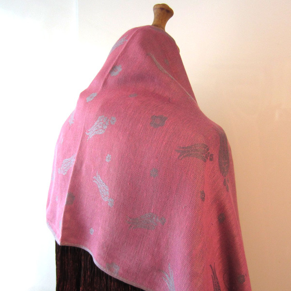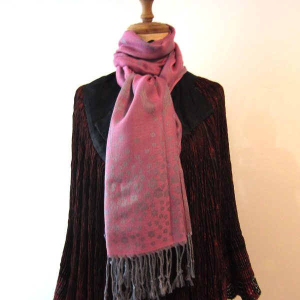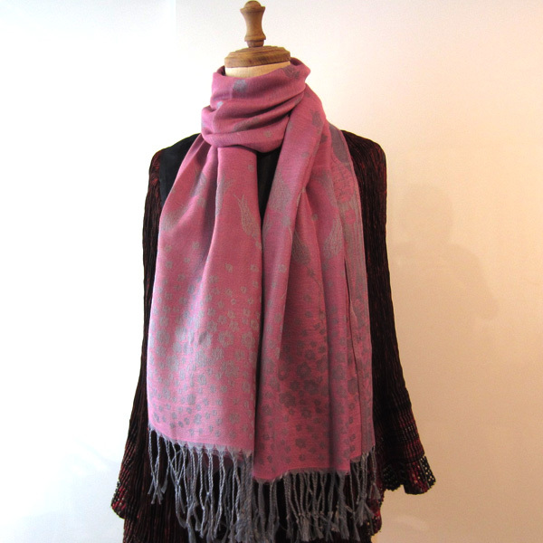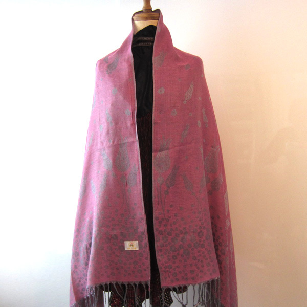 JT ピンクに銀の模様が美しい大判ストールです。