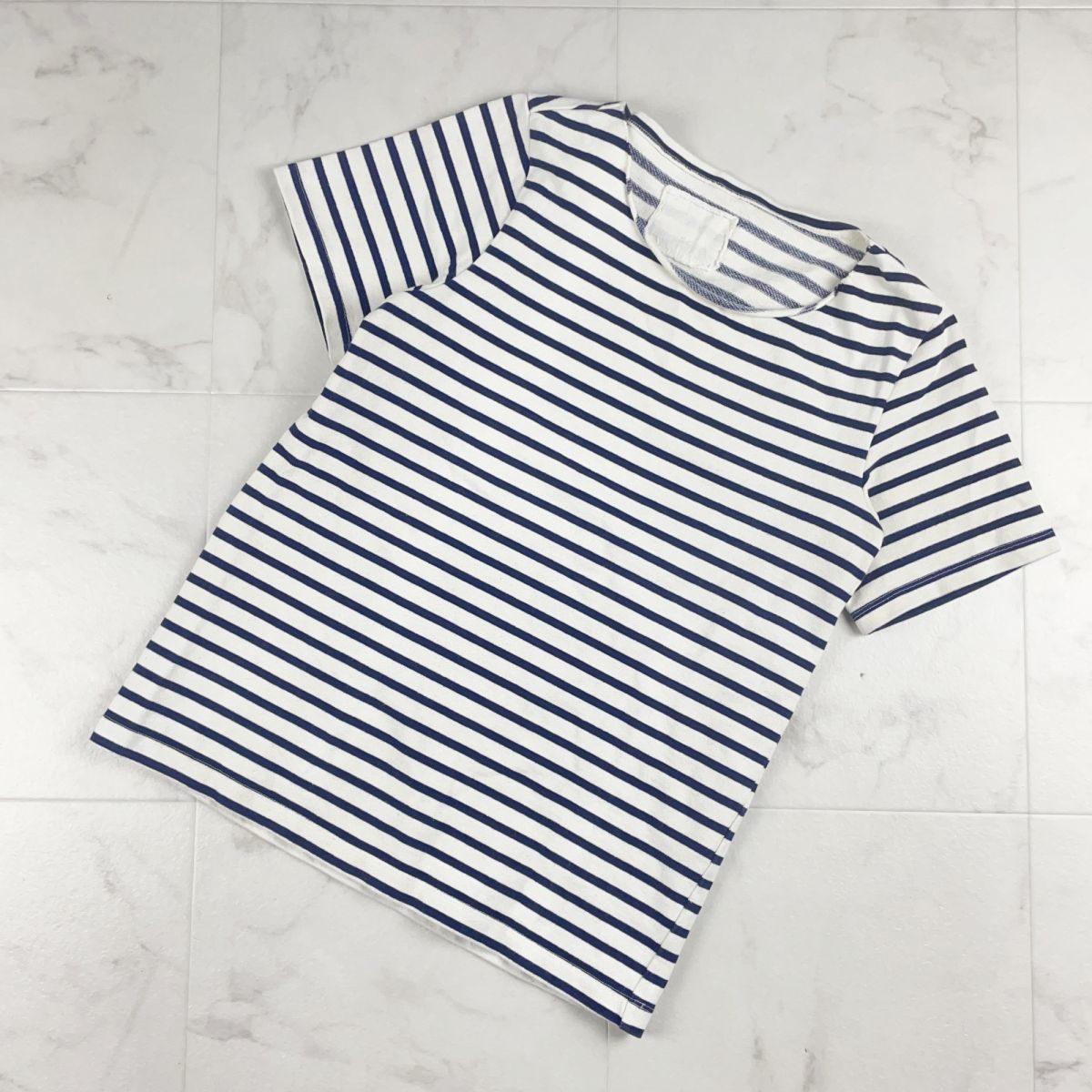 美品 v::room ヴィルーム ボーダー肉厚Tシャツ トップス レディース 白 ホワイト 紺 ネイビー サイズXS*HC995