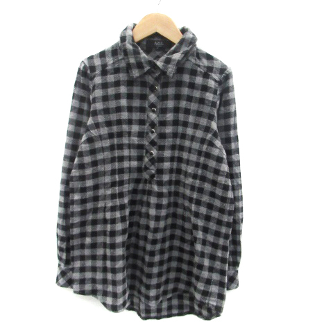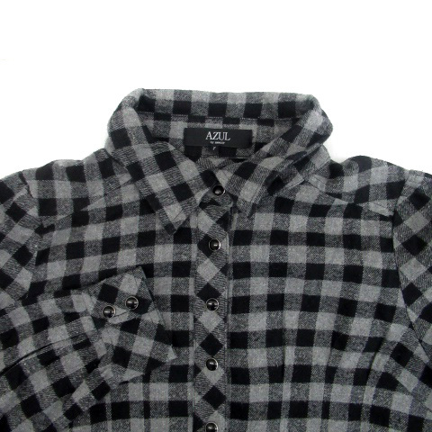 アズールバイマウジー AZUL by moussy カジュアルシャツ 長袖 チェック柄 F グレー 黒 ブラック /HO12 レディース