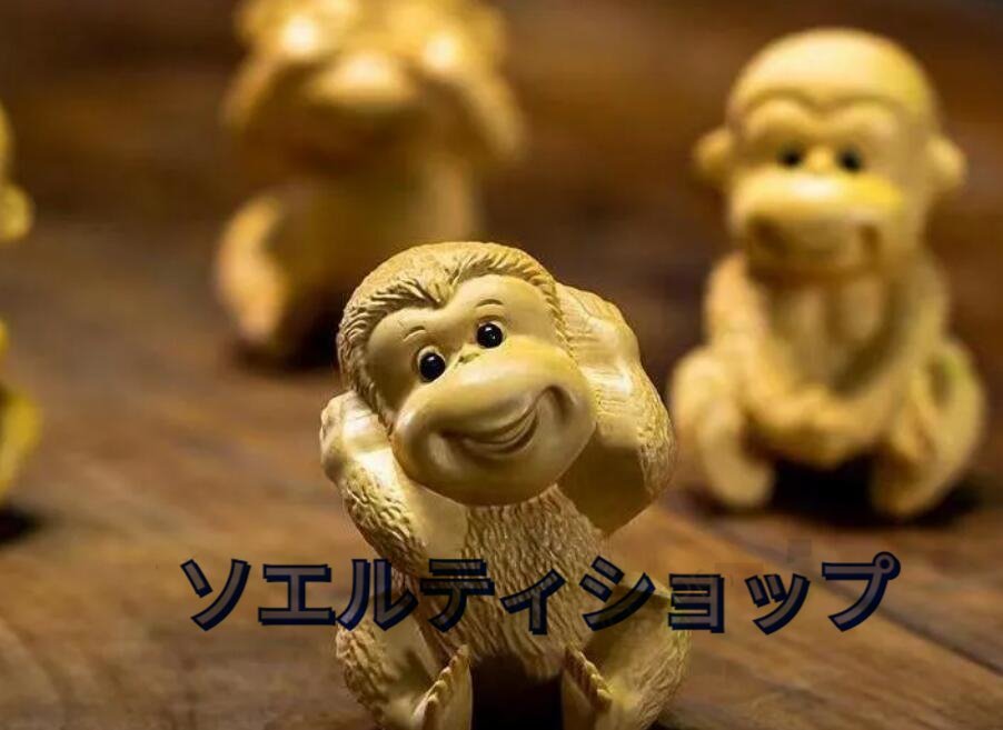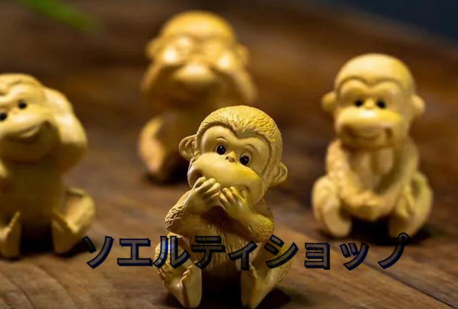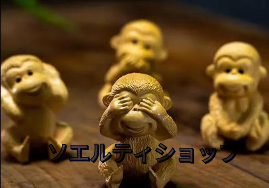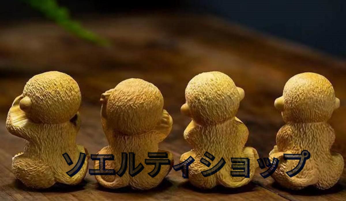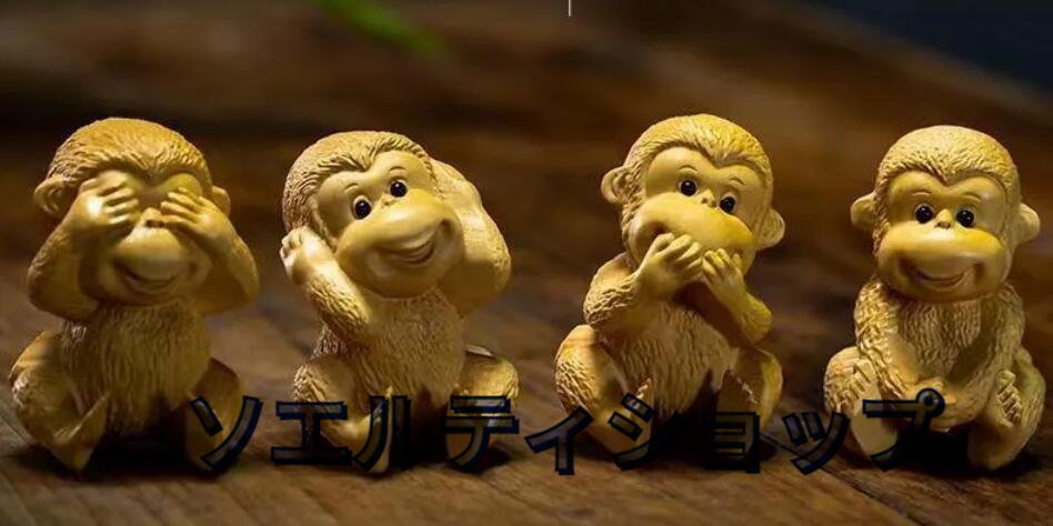 黄楊木彫り彫刻猿の置物四猿
