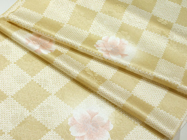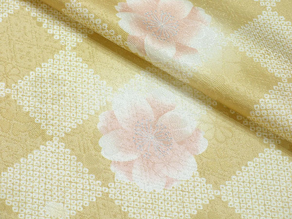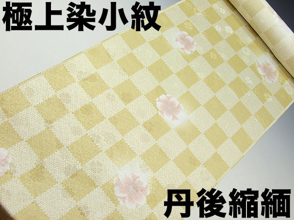 商品     【染め小紋】京友禅 小紋 丹後ちりめん 新品 反物 絞り格子柄 クリーム黄