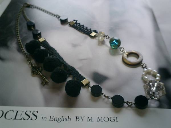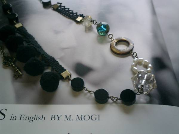 形のない夢を捉えて!シリーズです♪秋の少女(?)キュートな素材を集めたネックレスです♪秋色を集めて可憐にまとめました♪シックなオニキスは10ミリのディスク型、白の淡水パールは15ミリのリングにしました♪神秘的なレモン水晶は10ミリのラフカット、黒の綿レースやフェルト玉やチェコビーズや樹脂ビーズを合わせて可憐にロマンチックしています♪キュートな少女のイメージで作りました♪長さは全長65センチ位で調節自由です♪チョーカー風にされても可愛いです♪♪こちらは同じデザインの長いタイプやお揃いのブレスレットやピアスや同じシリーズも出品しています♪シンプルで飽きのこないいつまでも着けられるデザインを考えて作りました!ハンドメイドをご理解頂いてノークレーム、ノーリターンでお願いします