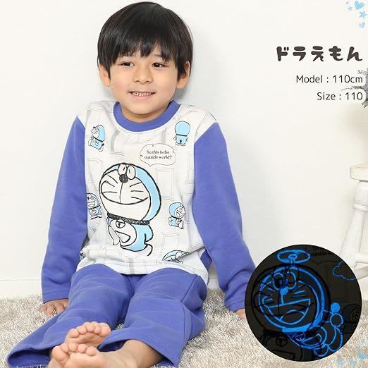 人気のキャラクター、ドラえもんの長袖長ズボンの裏起毛パジャマ♪