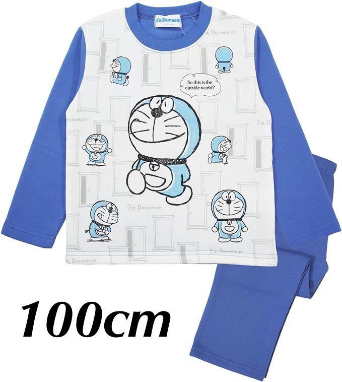 新品61955 ドラえもん 100cm ブルー ボーイズ蓄光長袖裏起毛パジャマ 光るパジャマ かぶり裏シャギーパジャマ秋冬ルームウエア 子供男子