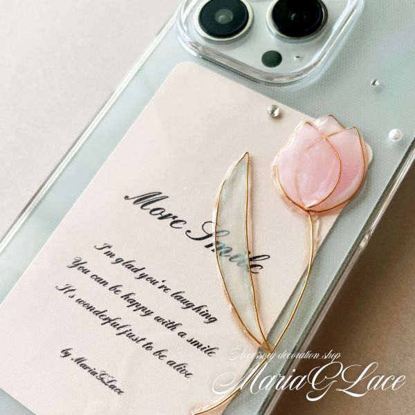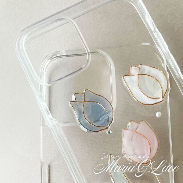 Google Pixel8pro チューリップ スマホケース デコ クリアケース お花 ストーン パール ハンドメイド レジン キラキラ かわいい