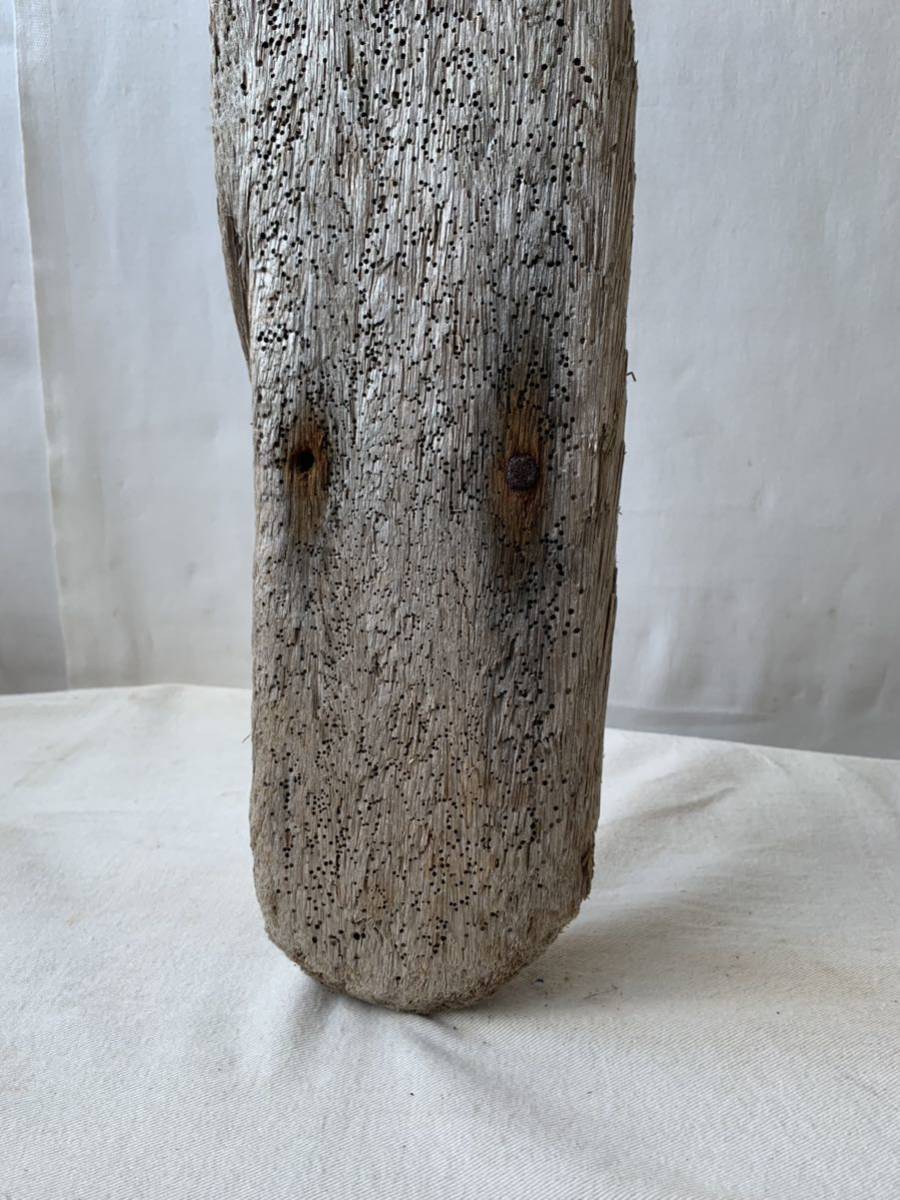 虫喰いだらけの古材です。経年の雰囲気が良く出ており、展示台や、プリミティブなオブジェとして飾って頂くと素敵だと思います。