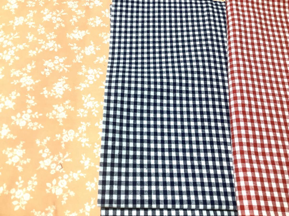 6m シーチング 3種 ギンガムチェック バラ 綿100% / 生地 はぎれ 日本製 草花 フラワー 薔薇 花柄