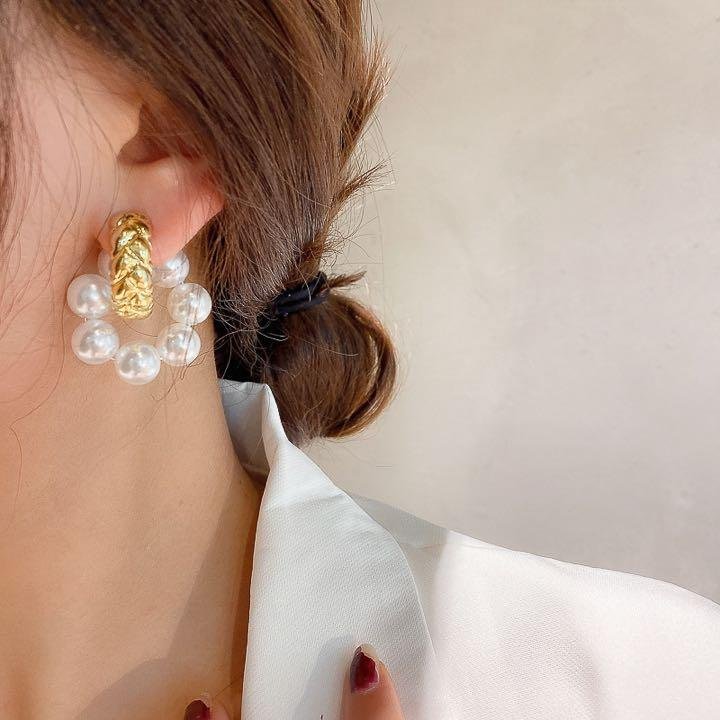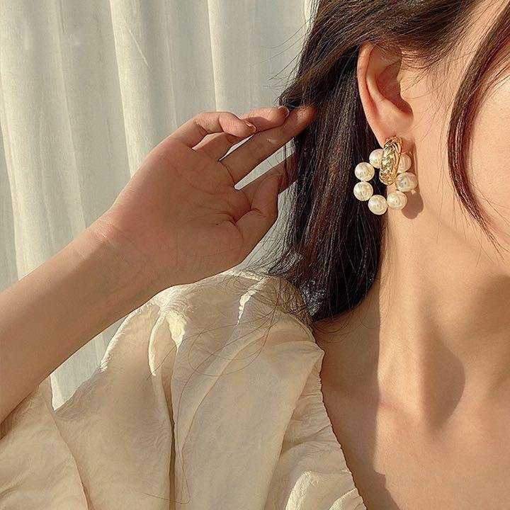可愛いパールピアス、シンプルでおしゃれなデザイン,カジュアルな服装から、フォーマルな服装までさまざまなコーディネートに合わせられます。