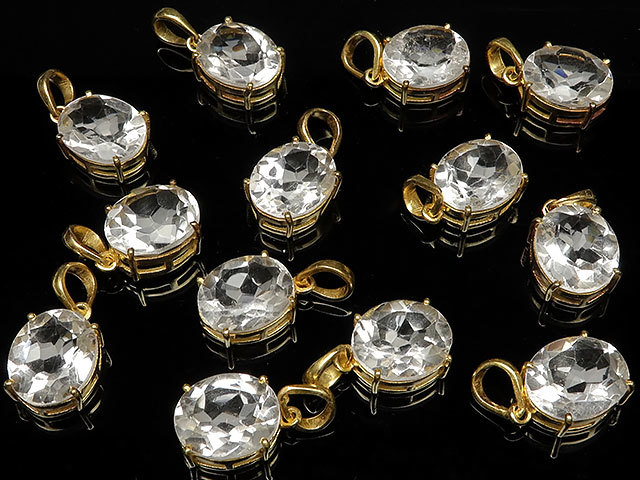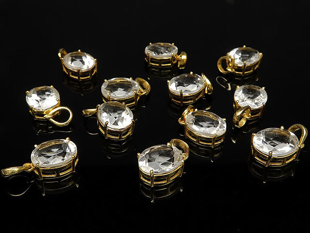 天然水晶 クリスタルクォーツ オーバルファセットカット ペンダントトップ 12×10mm[18KGP]【1コ販売】 / 60-17 CQ12PT