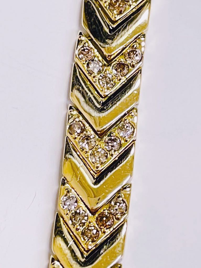 こちらは、K18台にブラウンダイヤ100石付きデザインブレスレットでしす。