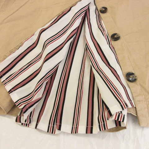 グレイル GRL チノスカート ミモレ丈 ストライプ ベージュ M *A691 レディース