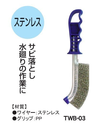【クリックポスト・メール便 送料無料】tard グリップJ型 ワイヤーブラシ 240mm ステンレス ☆サビ落とし、水廻りの作業に ☆TWB-03