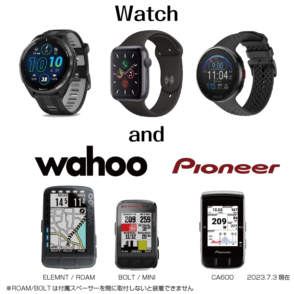 ・ワフー:ELEMNT / ROAM(V2) / ROAM / BOLT(V2) / BOLT / Mini ※ROAM/BOLTは付属スペーサーを間に取付しないと装着できません