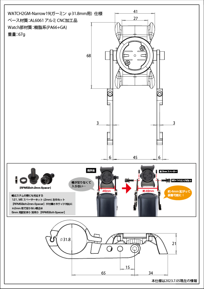 ◆ハンドルのクランプ径(サイズ) 31.8mm用(標準サイズ)で出荷。※31.7mm対応(ゴムシムなど利用不可)