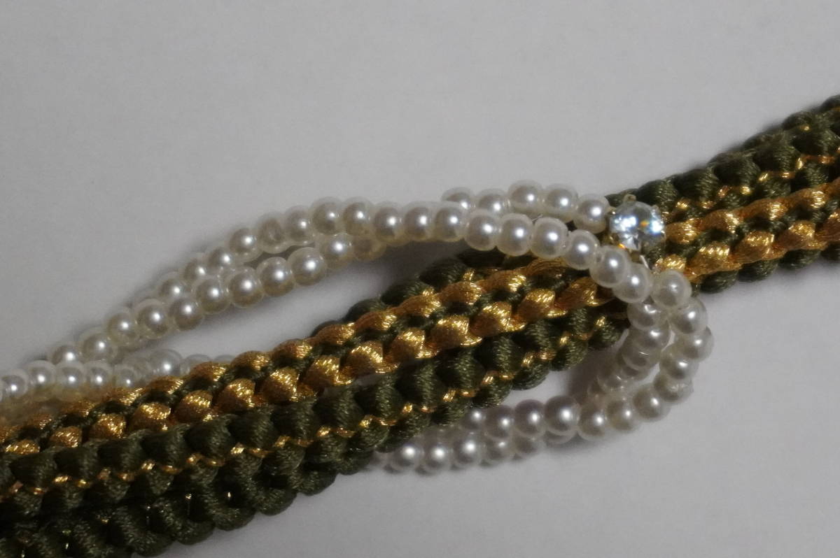 新品即決! 振袖用の飾りつき丸帯締め253(即決)浴衣着用時や髪飾りにも M表示 渋抹茶