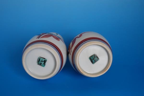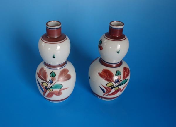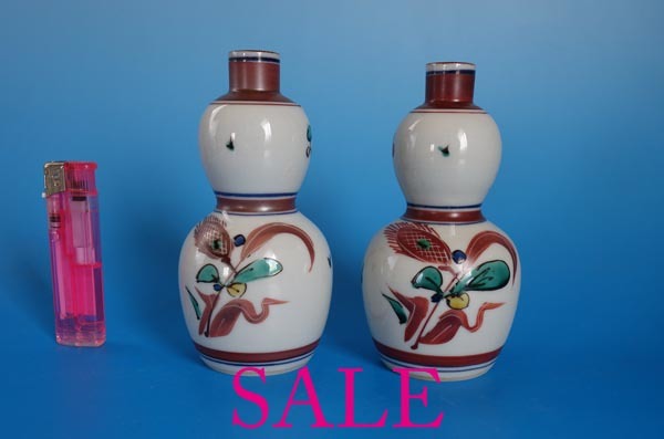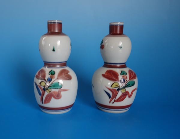 九谷焼 赤絵 草花文 酒器 一対  北出塔次郎 北出窯 瓢箪形 徳利  瓢 瓶 同梱s可 日本芸術院賞 受賞 セール品 特売品 1