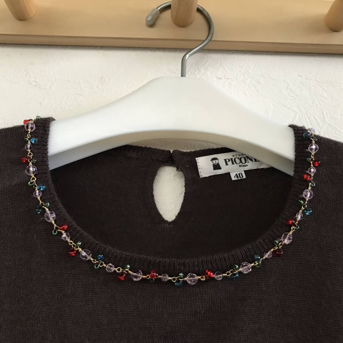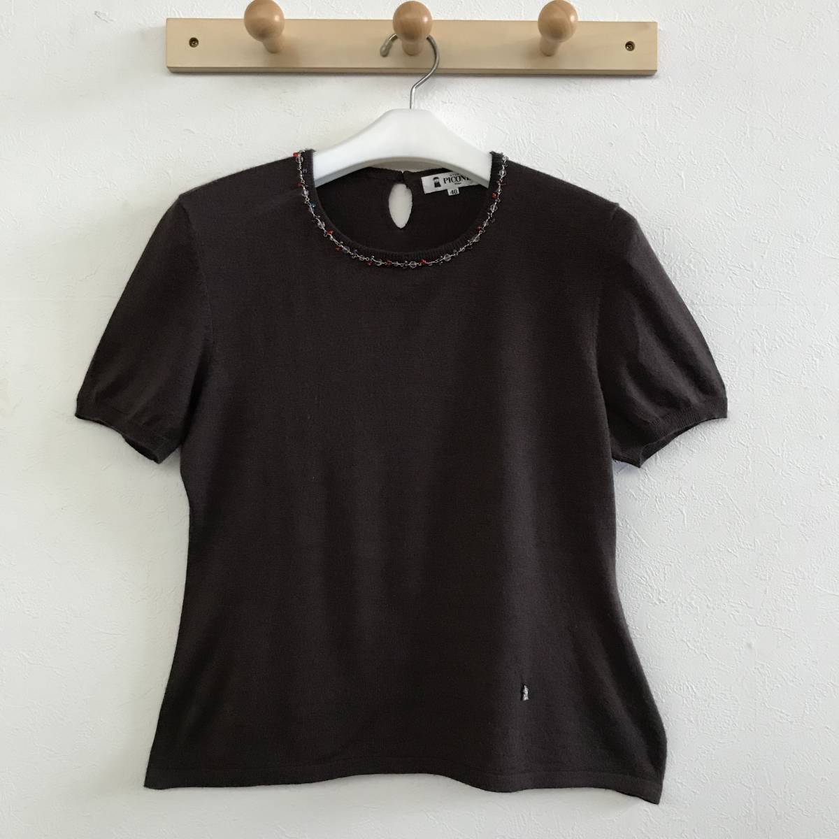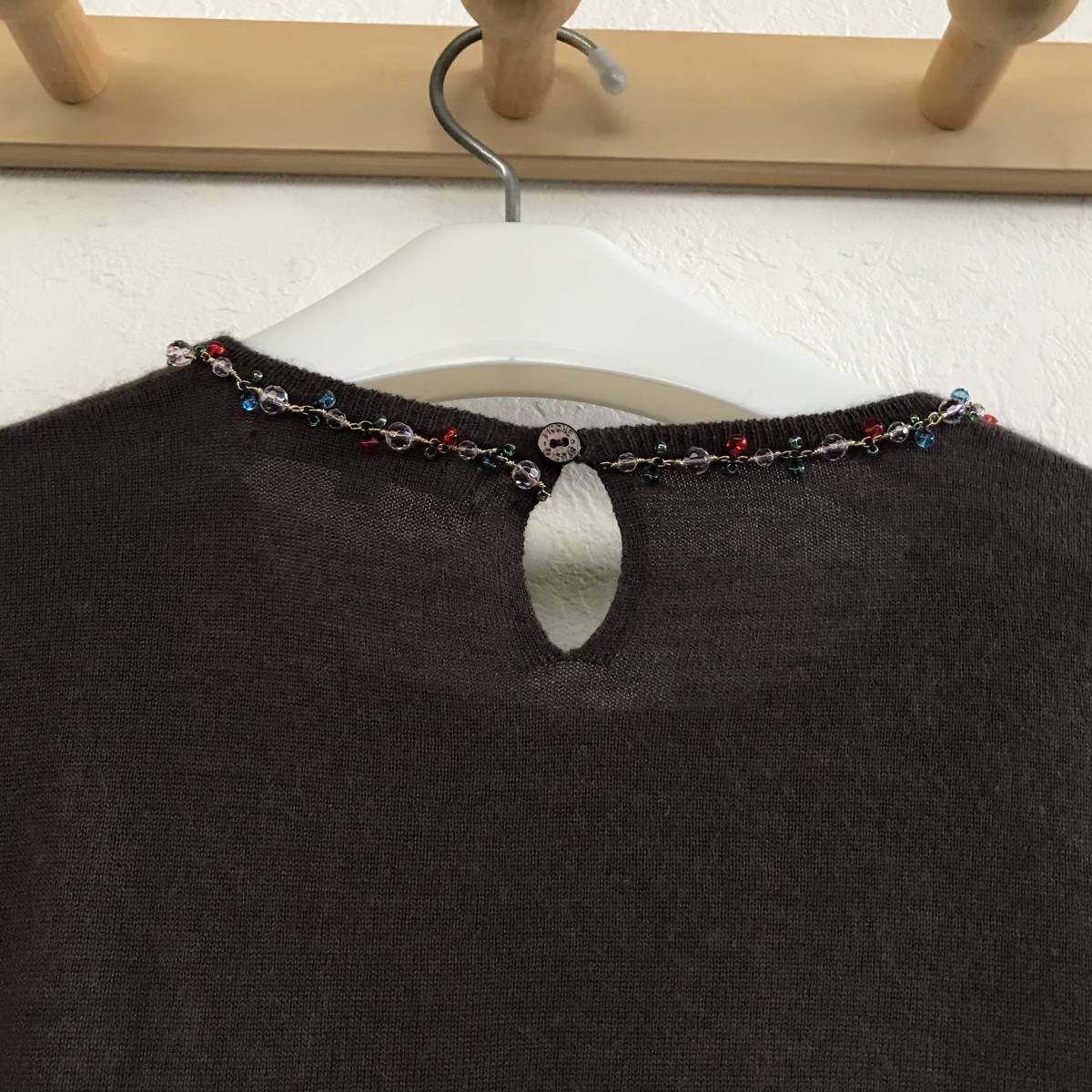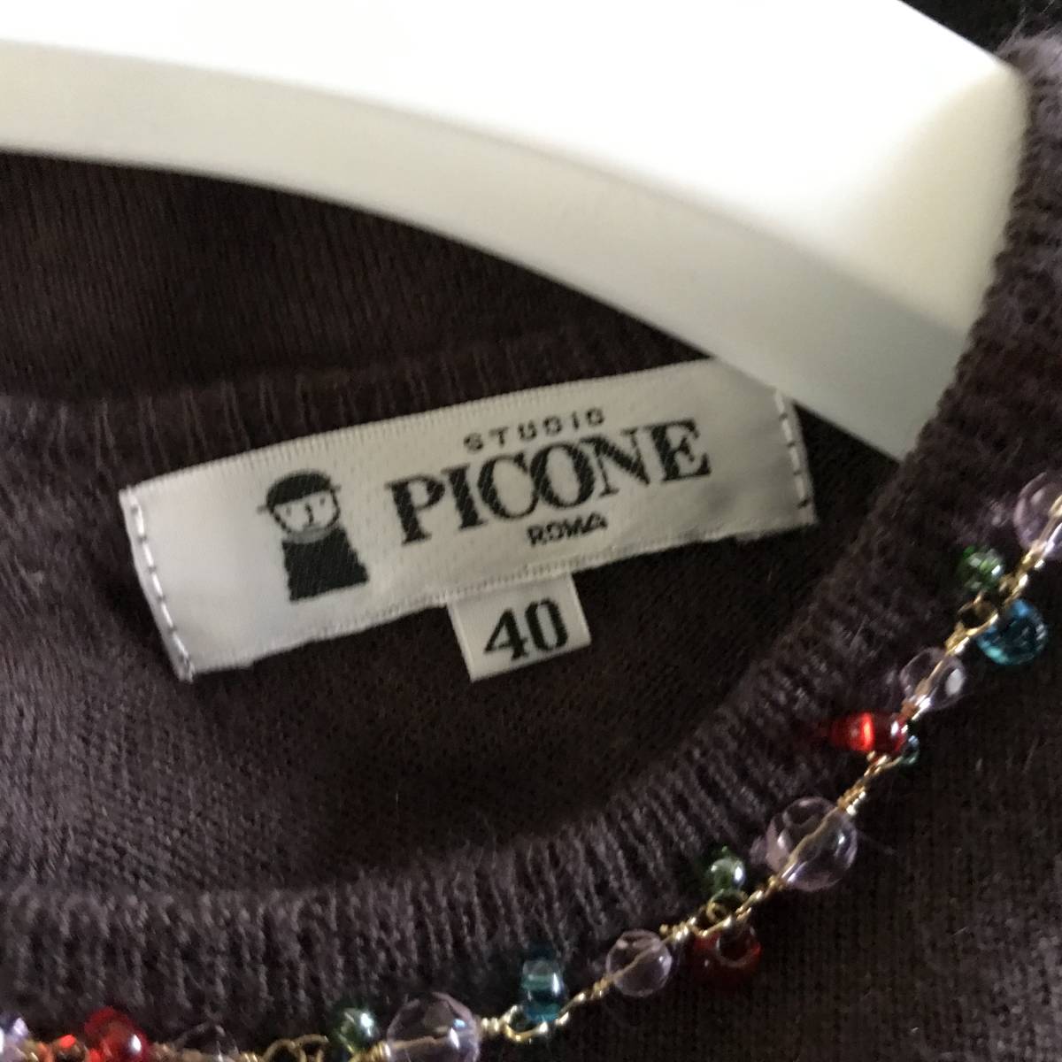 STUDIO PICONE ROMA ピッコーネ レディース ビーズ使い 半袖アンゴラブレンドニット ロゴチャーム付き 美品 size 40