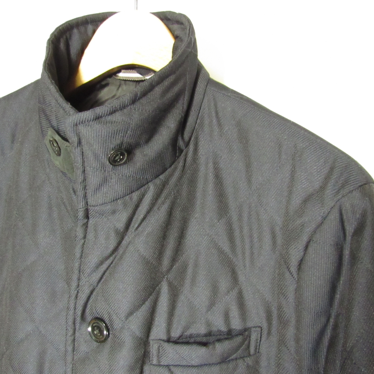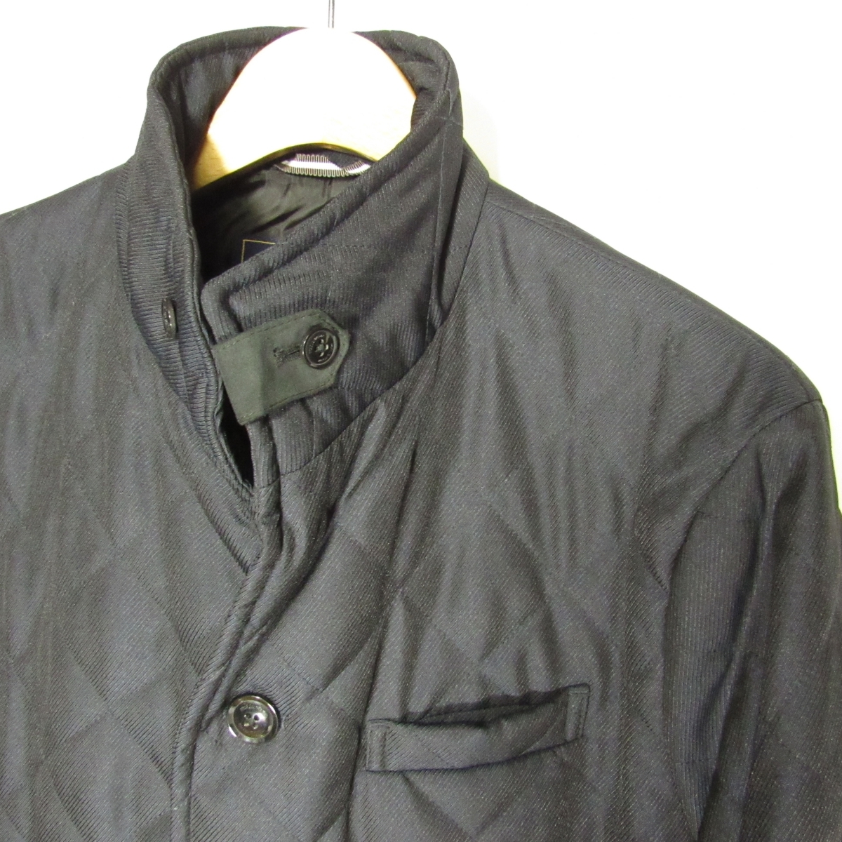 | 伝統的なスタイルや仕立て、縫製の良さなど服づくりの基本を大切にしながら、愛される服を作っている日本の老舗「MITSUMINE」 色は限りなく黒に近い濃紺で、パッと見の印象は黒です。 メンズキルティングコート/秋冬 型番:MJ021AW02 シングル4つボタン(襟元まで留めると5つボタン)/ノーベント/裏地-総裏/肩パッドなし/両腰ポケットあり/左胸ポケットあり/左に内ポケットあり |