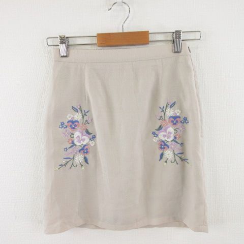ミーア MIIA ミニスカート タイト 刺繍 ベージュ F *A158 レディース