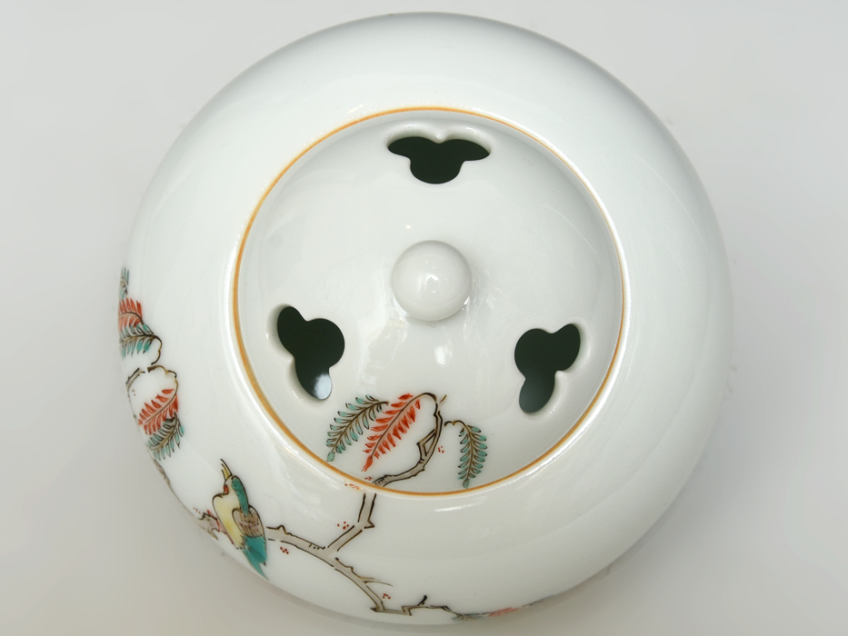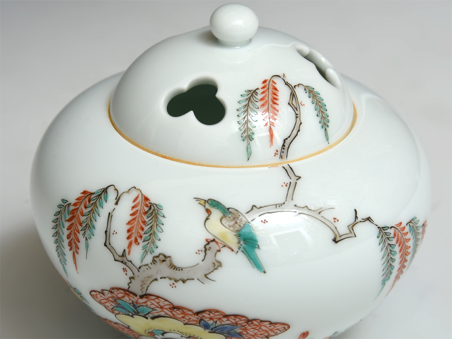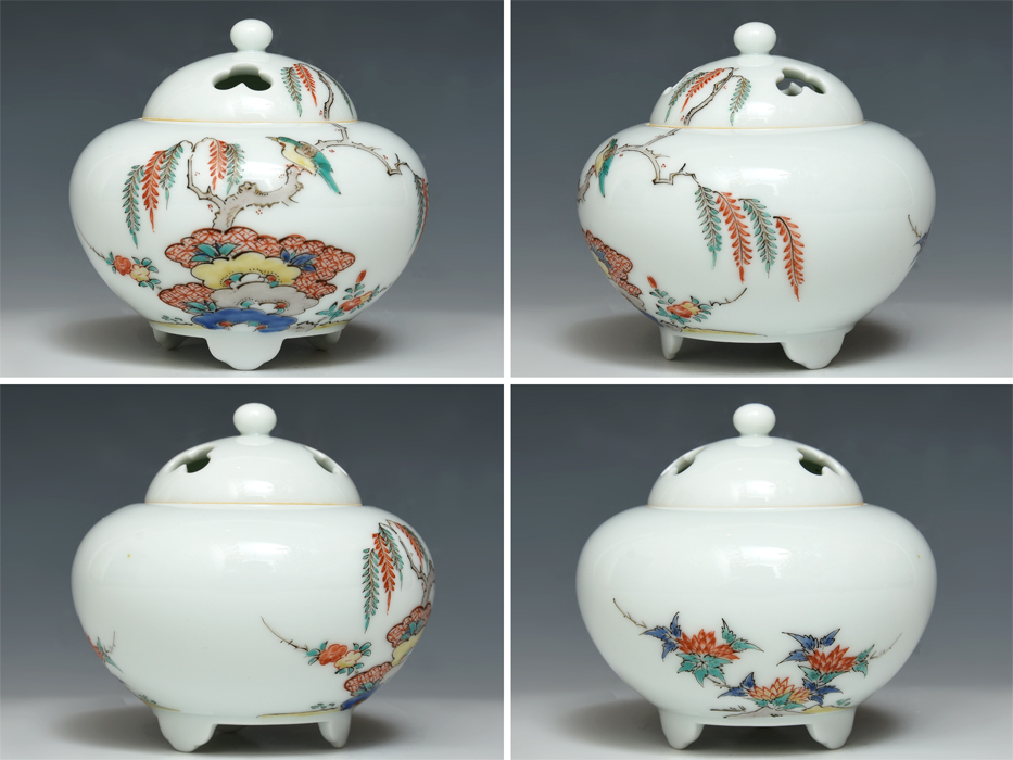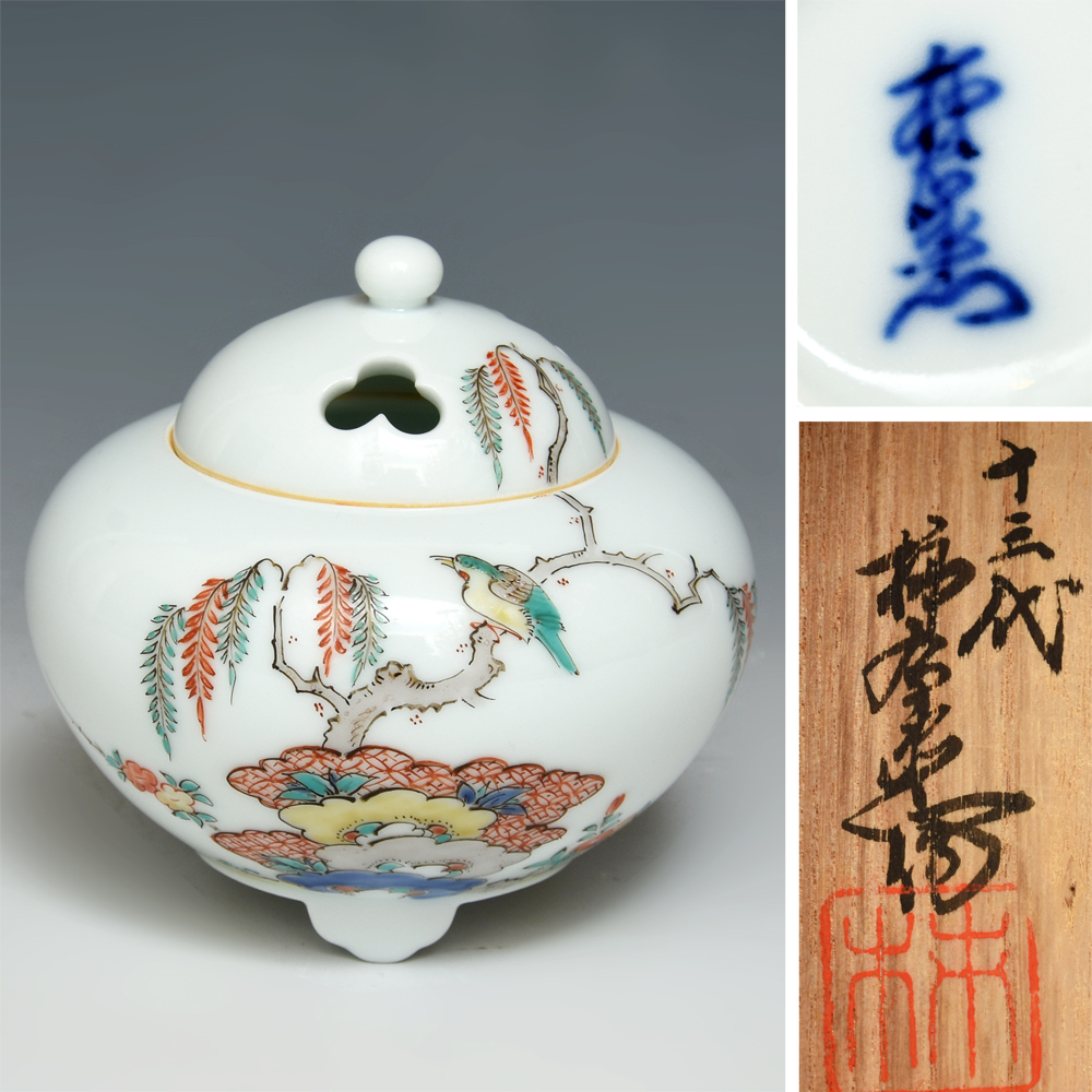 人間国宝 十三代 酒井田柿右衛門 (造) 錦柳鳥文香爐 共箱 しおり 有田焼 白磁 香炉 古陶磁 重要無形文化財 |