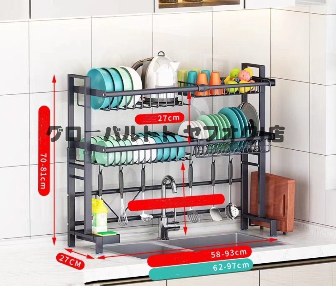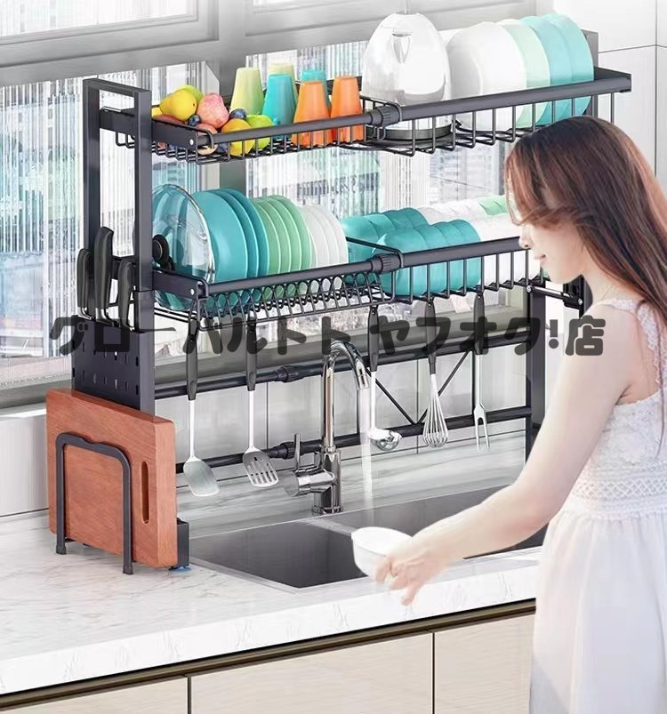 独特 水切りラック スリム 水切りかご 伸縮 シンク上 流し台上 食器ラック 収納ラック キッチンラック 置物ラック ステンレス製 食器棚S831