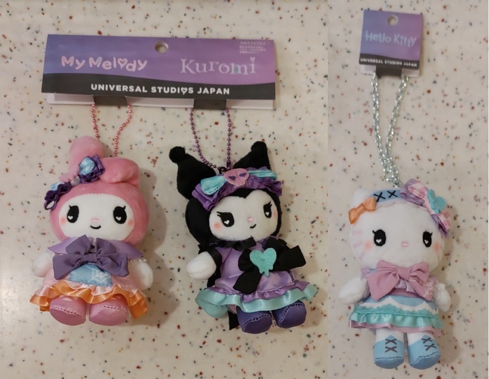 希少 ユニバーサル・スタジオ・ジャパン(Universal Studios Japan) USJ 期間限定イベント<NO LIMIT! ハロウィーン(no limit Halloween 2023)><ハハハ!ハロウィーン・パーティ(Hahaha! halloween party)><ハロウィーン ホラーナイト(Halloween Horror Nights)2023> 限定 サンリオ(Sanrio)クロミ(Kuromi)マイメロディ(My Melody)ハローキティ(Hello Kitty)限定 グッズ マスコット ぬいぐるみ キーチェーン【クロミ&マイメロ&ハローキティマスコットキーチェーンセット】です。
