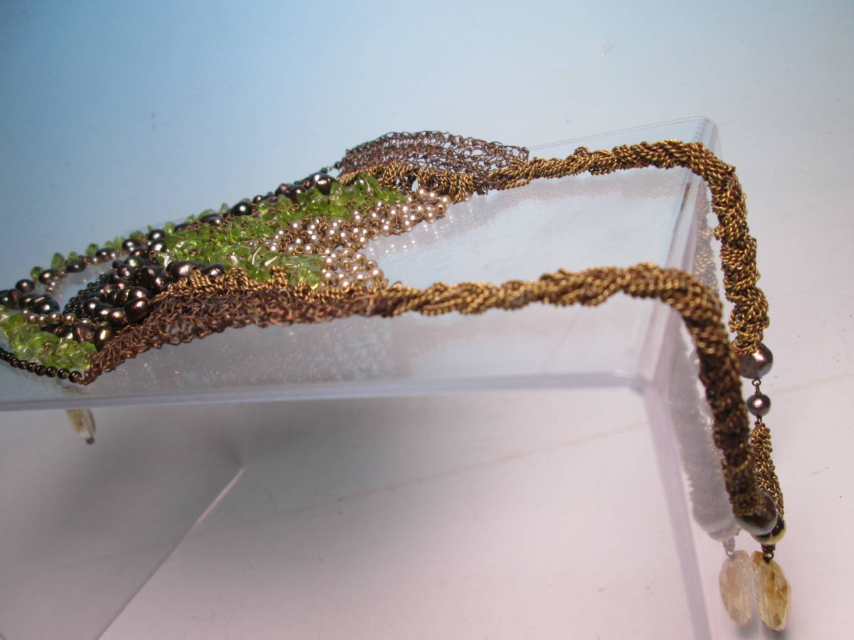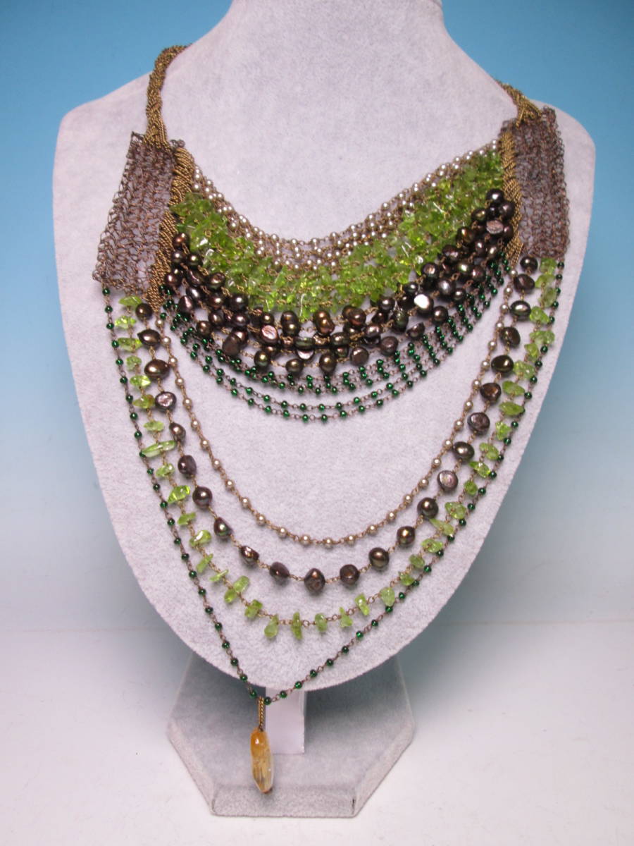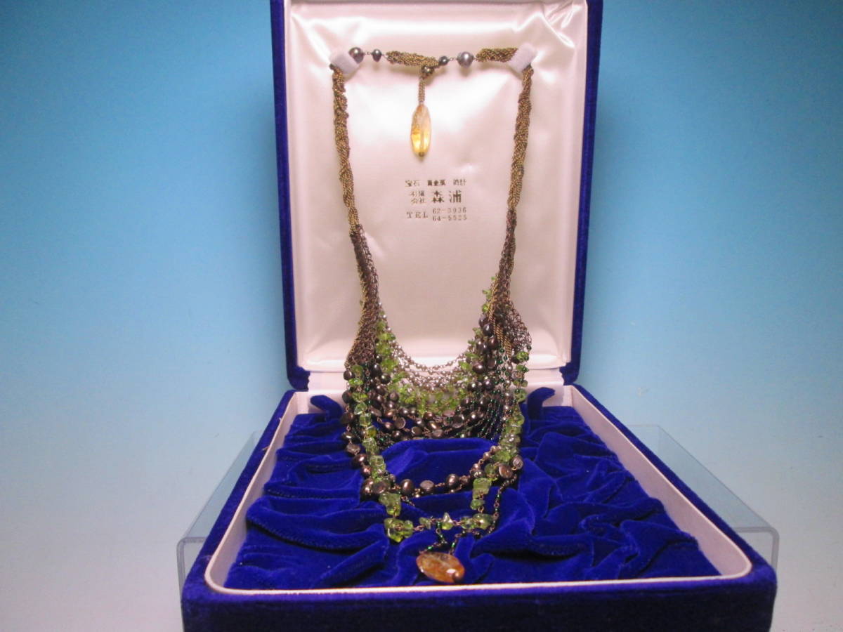 ☆☆本真珠/ペリドット/淡水真珠/ビーズ/水晶 27連のデザインネックレス ケース付 パーティージュエリー