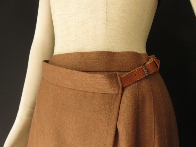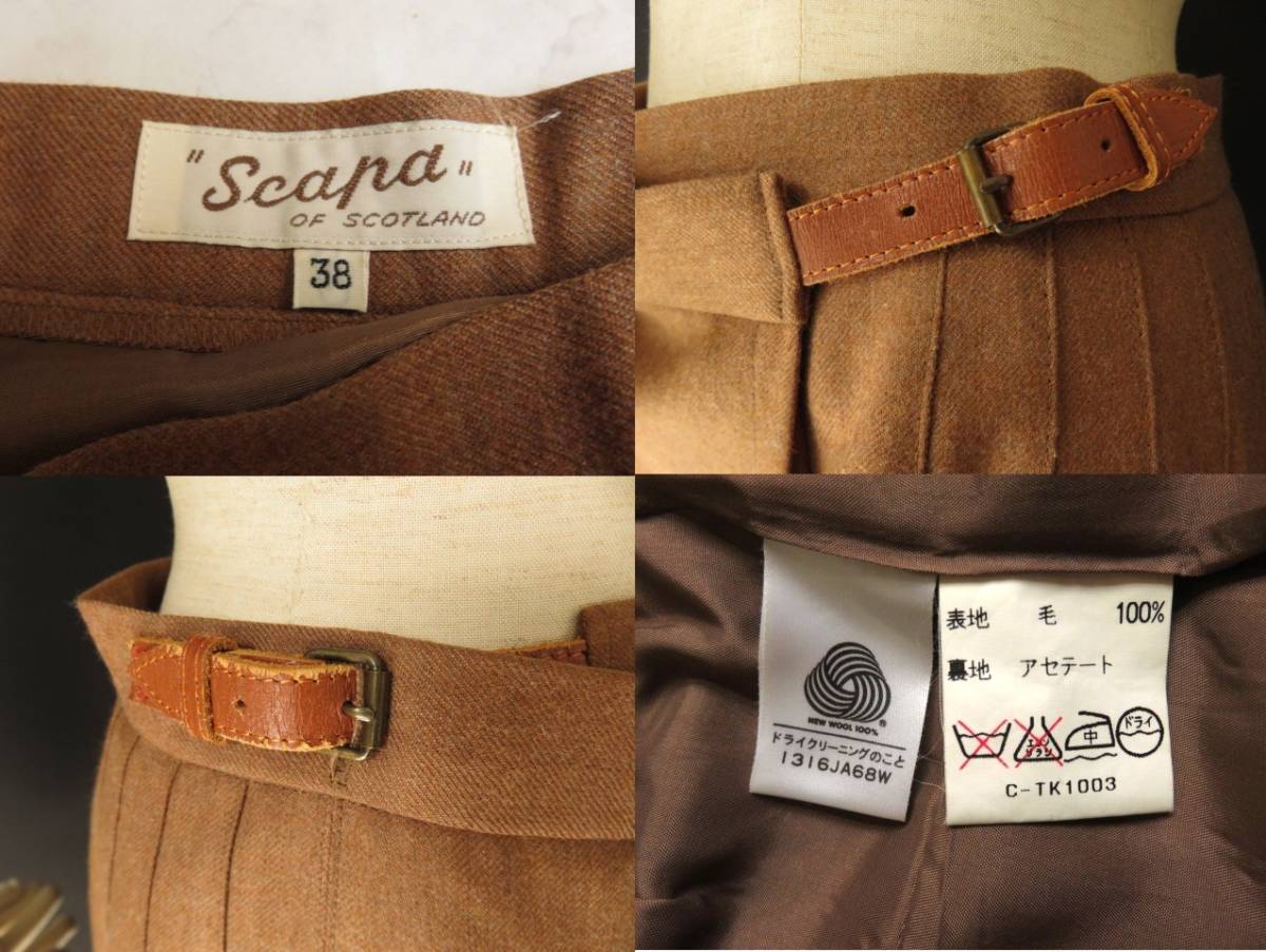 ■裏地訳あり 上質美品 【 SCAPA 】スキャパ 高級 ウール 巻きスカート キャメル プリーツ【38】9号 M ウエスト65㎝~70㎝ b1946
