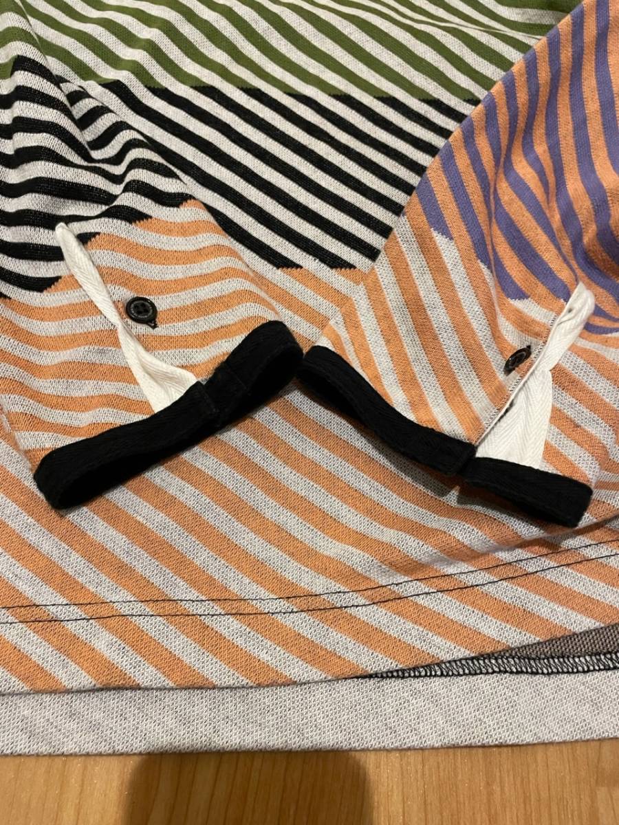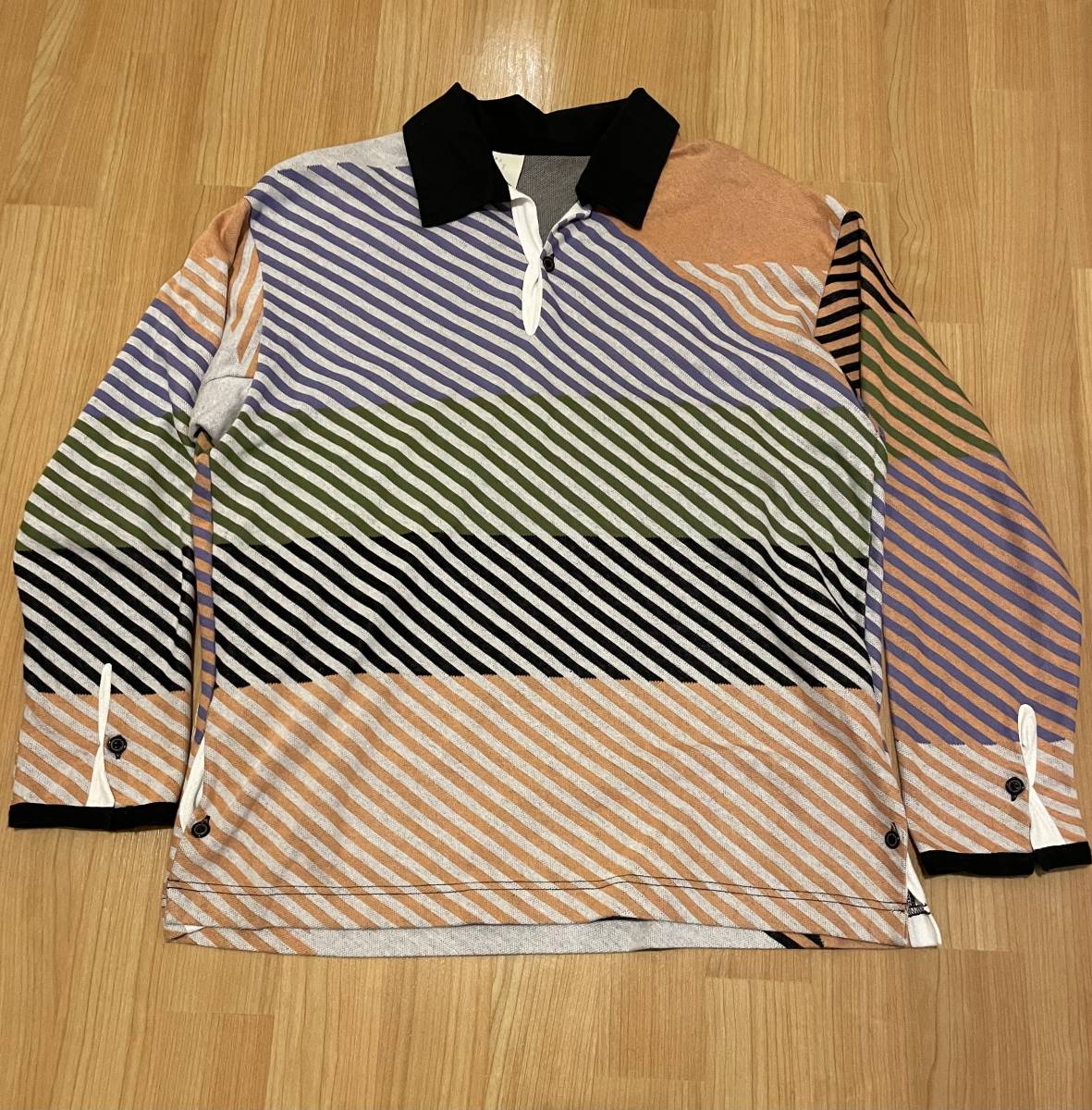 ボタンはラバーボタンでは無くいわゆる普通の素材感のオリジナルボタンで、若干肉厚のポロシャツ感覚で着れると思います。