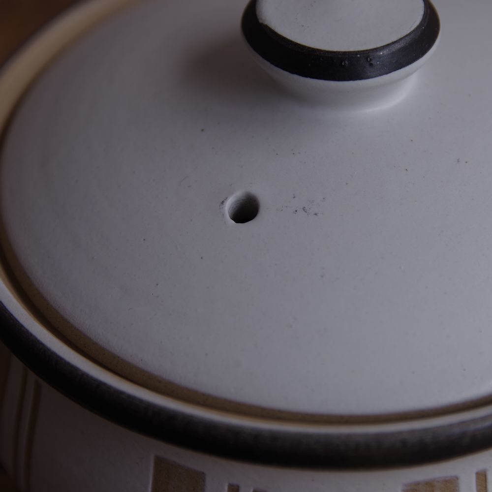 蓋には一か所、蒸気抜きの穴が開いています。