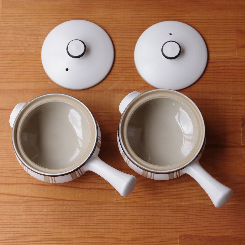 デンビー グルメ DENBY Gourmet スープポット ボウル キャセロール 蓋つき ベージュ 縞 #230715-1,2 ヴィンテージ レトロ 食器