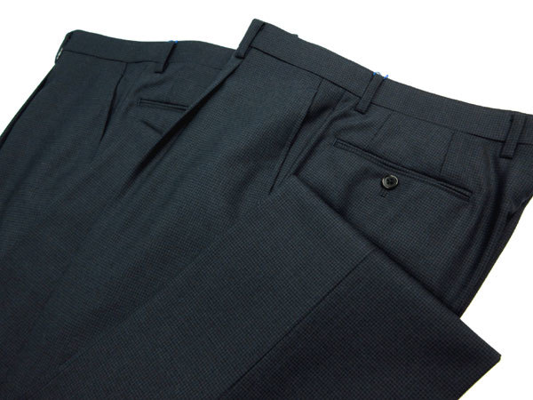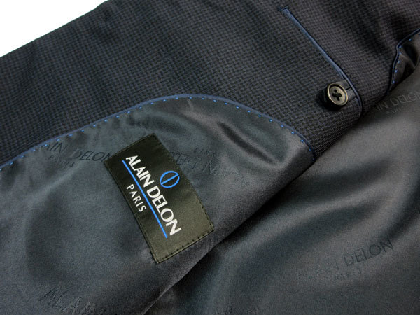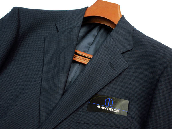 正規品 新品 2パンツ アランドロン A7 身長180㎝ 胴囲84㎝ 秋冬 2ボタン ALAIN DELON 千鳥格子 ワンタック ツーパンツ 紺 LL d194