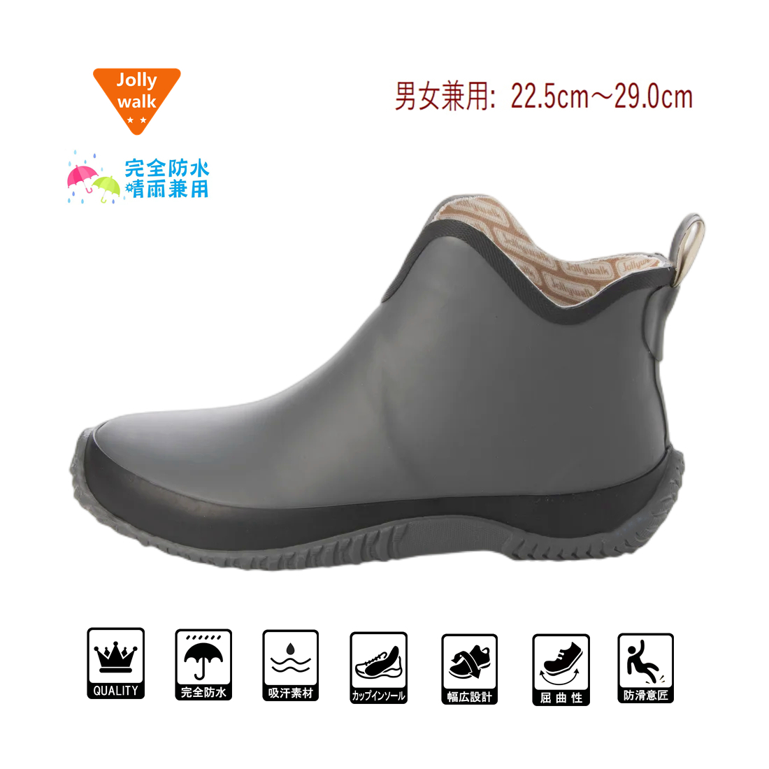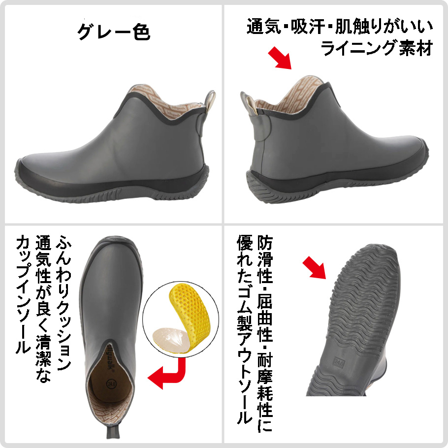 ゴム製ショートレインブーツで、耐摩耗性・耐屈曲性・耐候性に優れています。