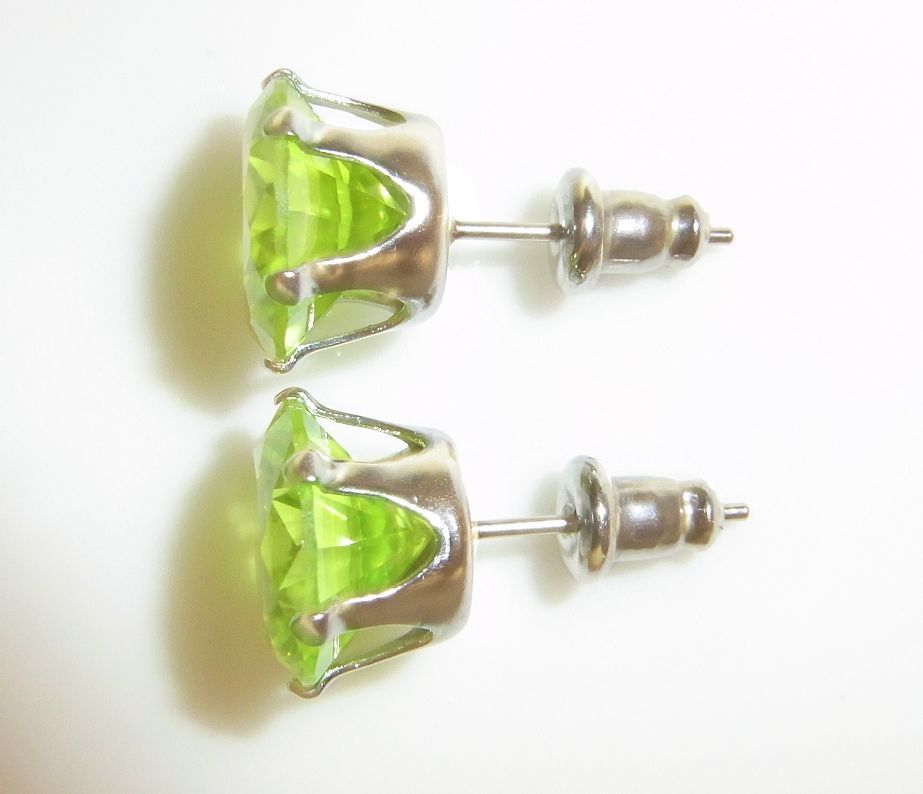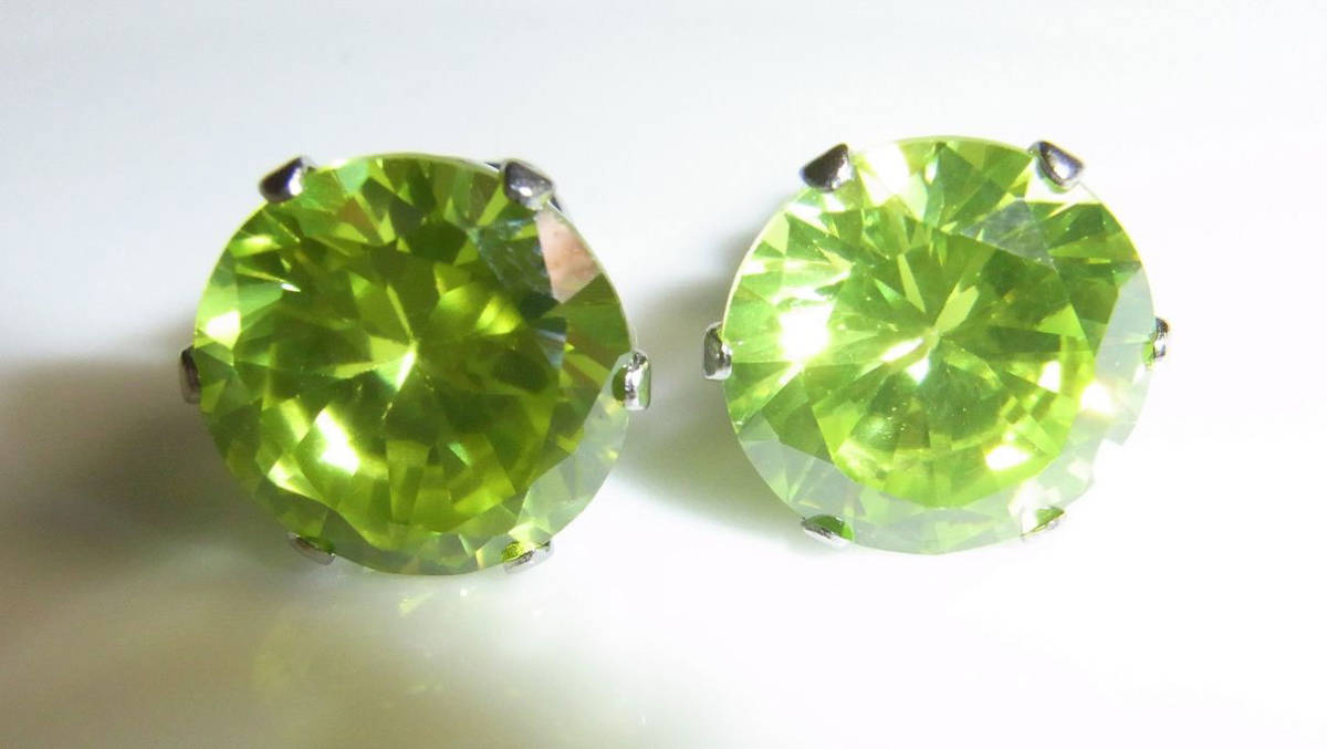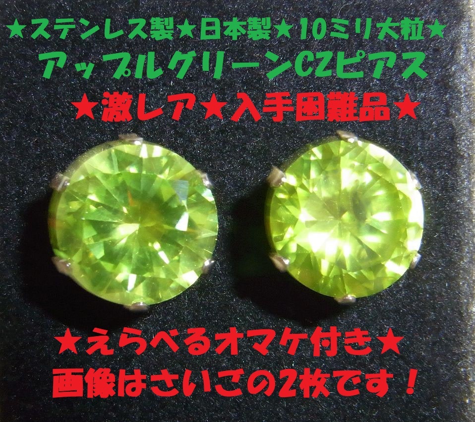 | ◆大粒10ミリ 本物 アップルグリーンジルコニア ピアス サージカルステンレス製◆ | |||