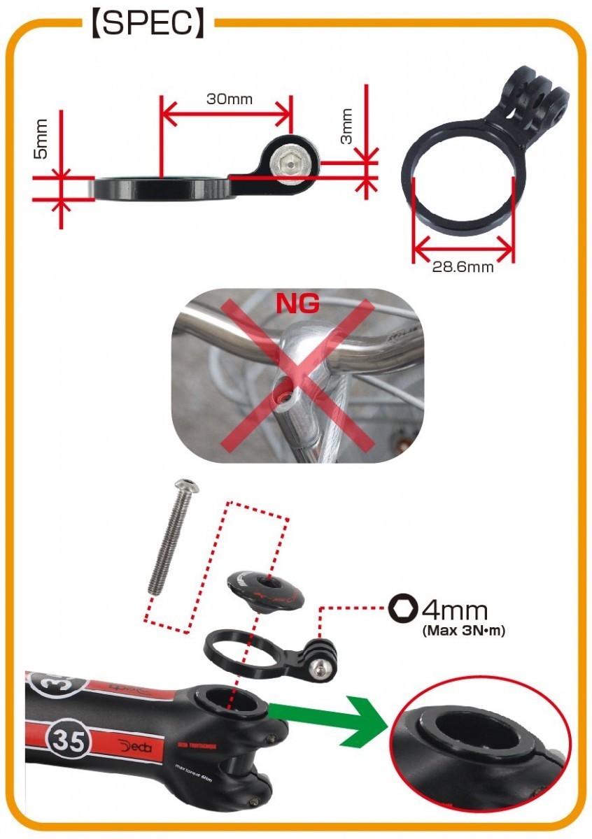 更にGoPro・Shimano・Garmin VIRB・Cycliqなど4ブランドの記載画像のアクションカムの装着が可能。