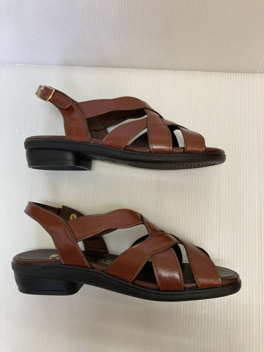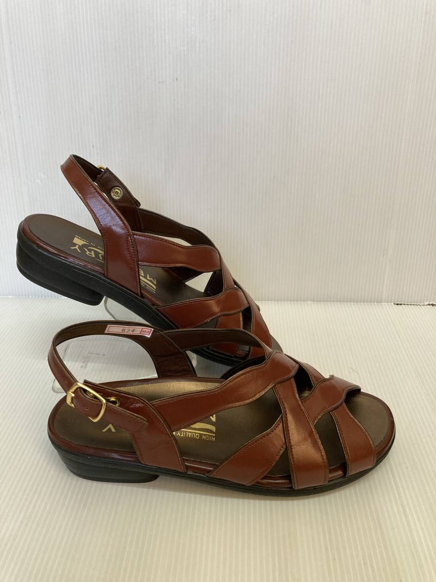 ●お買い得!婦人 革バックベルトサンダル フジタカ 834 マロンブラウン 22.5㎝ 幅EEE 日本製 ヒールの高さ約3㎝