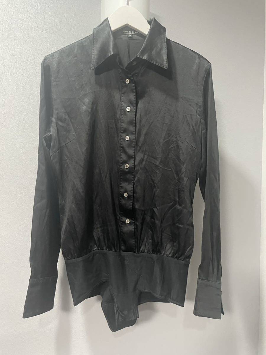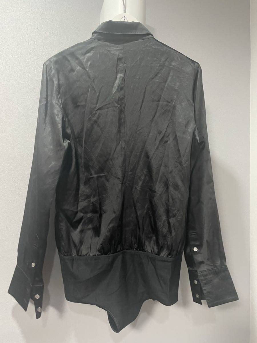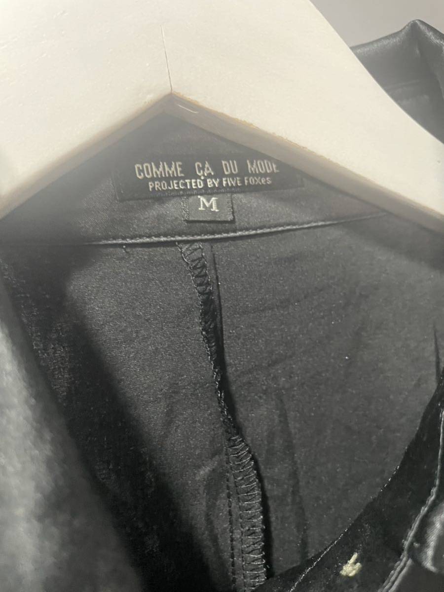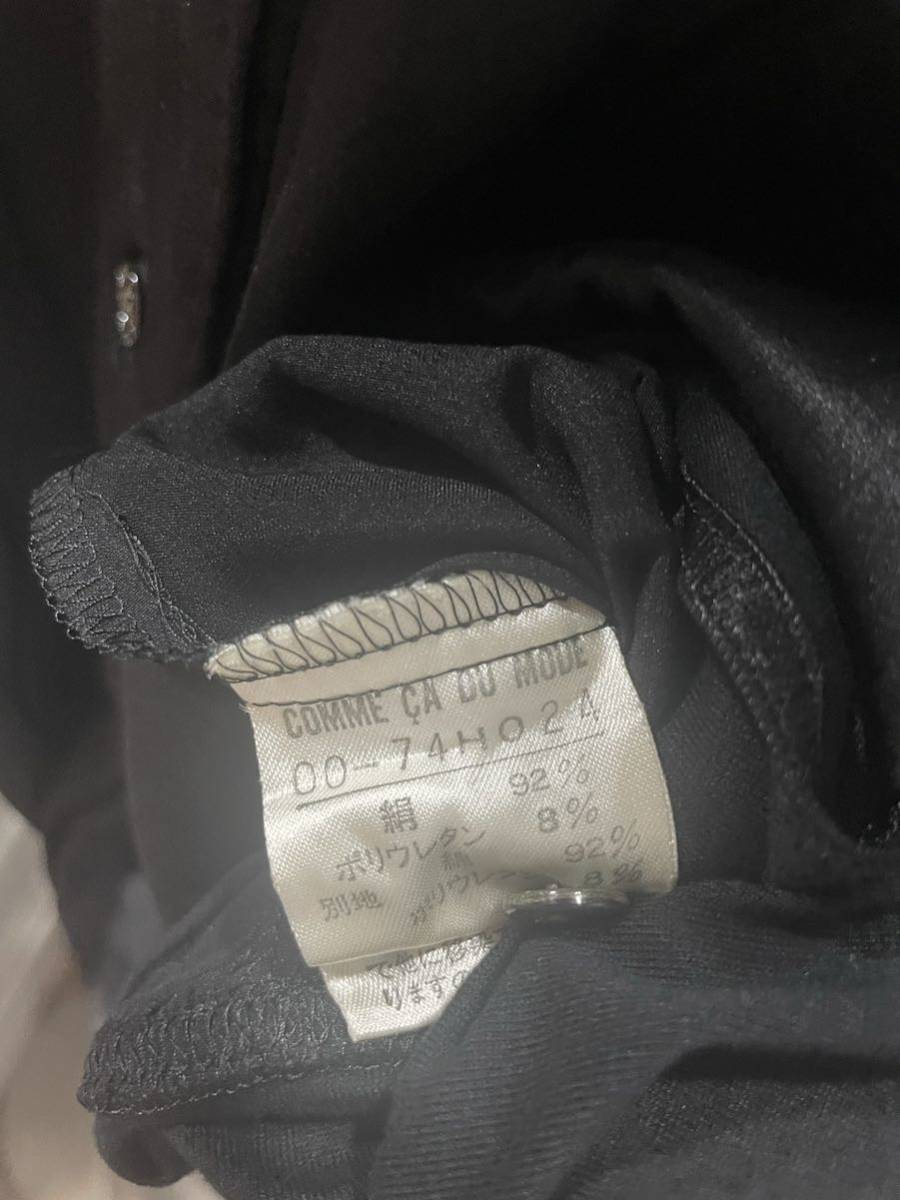 美品コムサデモードCOMME CA DU MODE長袖シルクシャツつなぎトップス黒ボタンロゴレディース