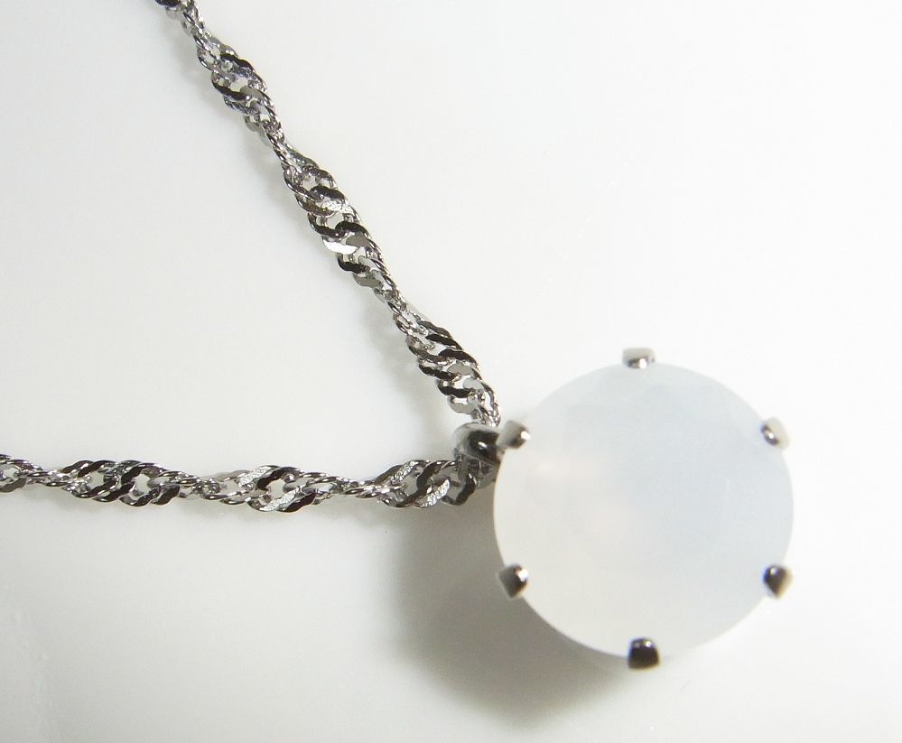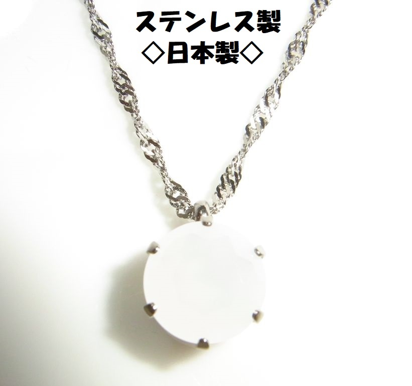 ◆ホワイト ミルキー クリスタル ペンダント ネックレス ステンレス製◆ | |||