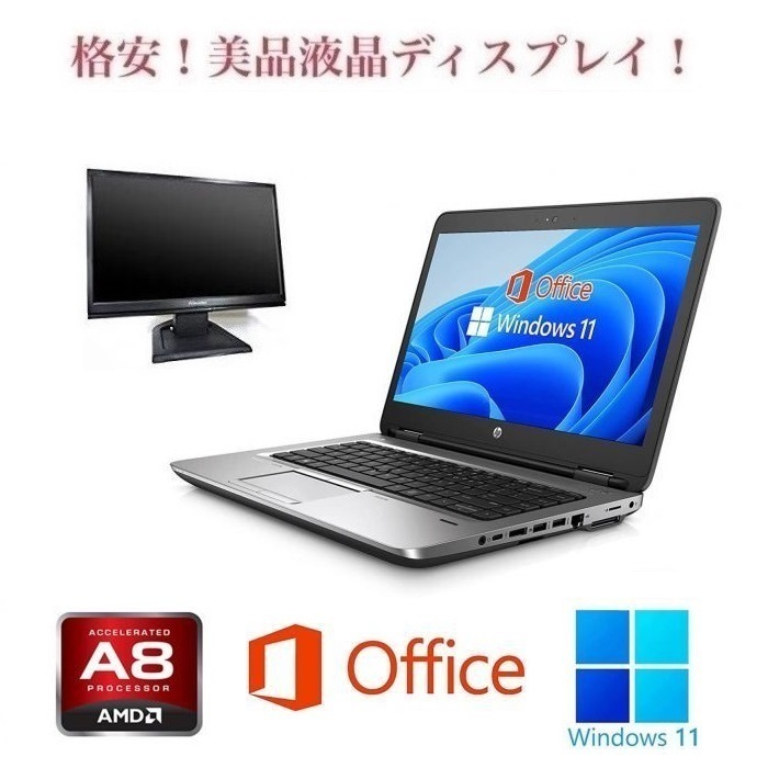 【サポート付き】HP 645G2 Windows11 大容量メモリー:8GB 大容量SSD:128GB Webカメラ Office 2019 & 液晶ディスプレイ19インチ