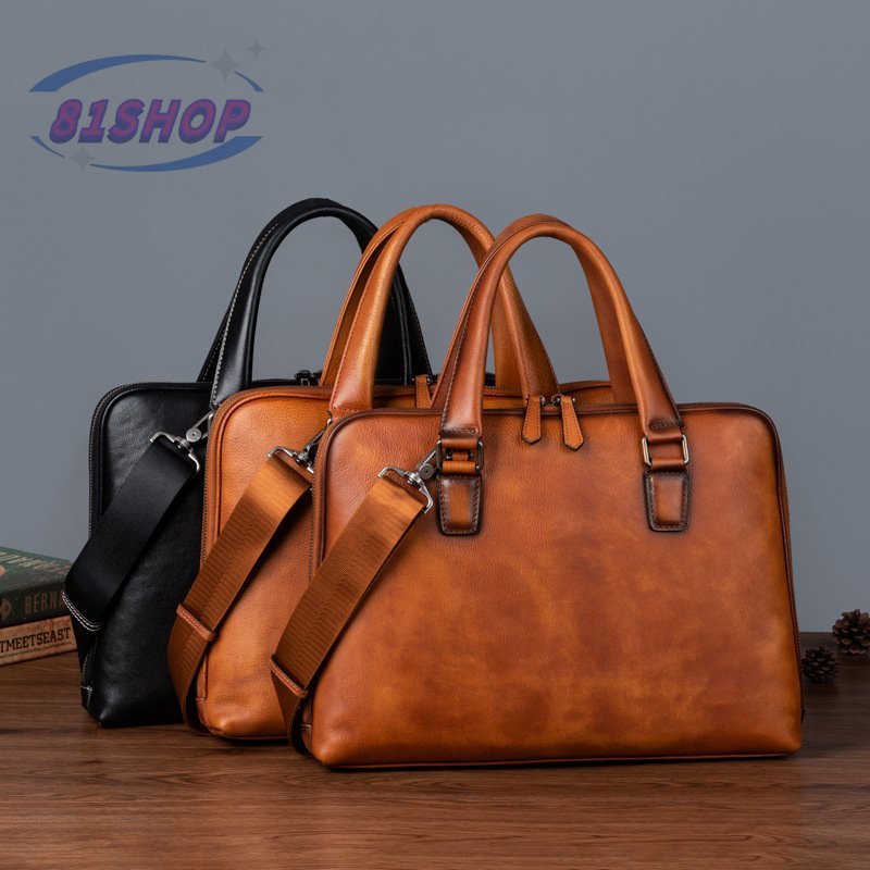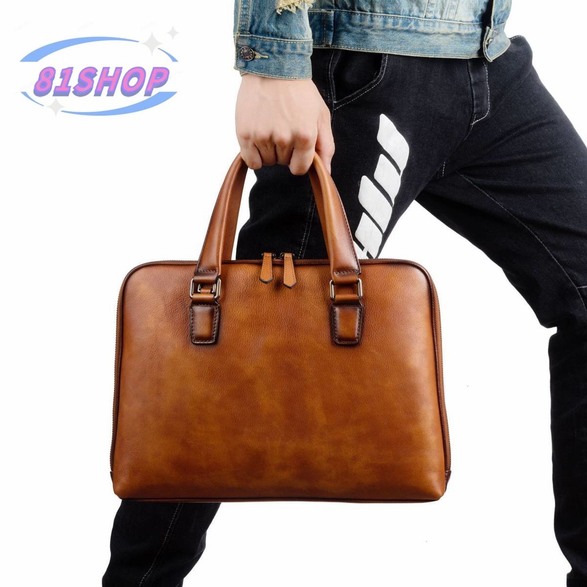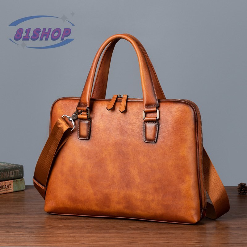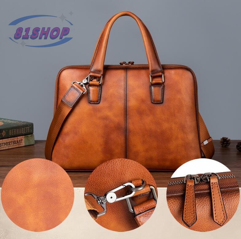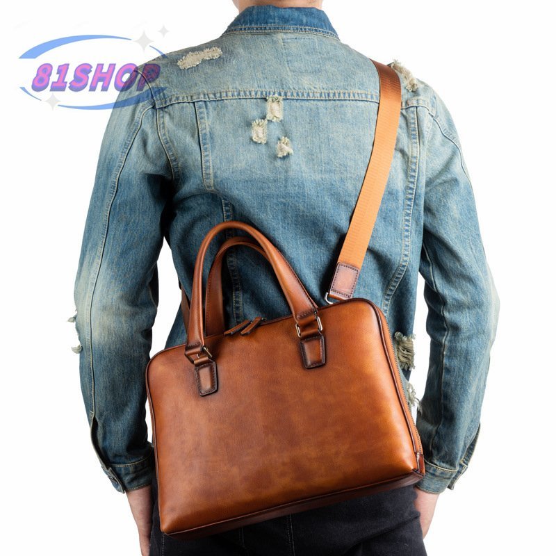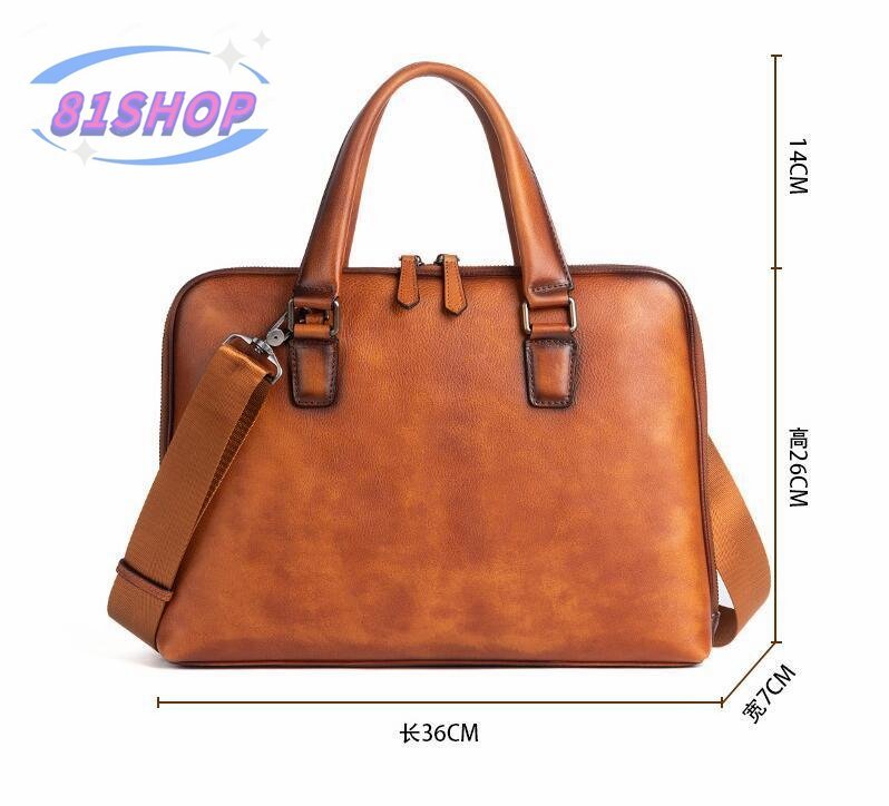 「81SHOP」ヌメ革 ハンドメイド メンズ本革 ビジネスバッグ ブリーフケース 牛革 レザー 通勤鞄