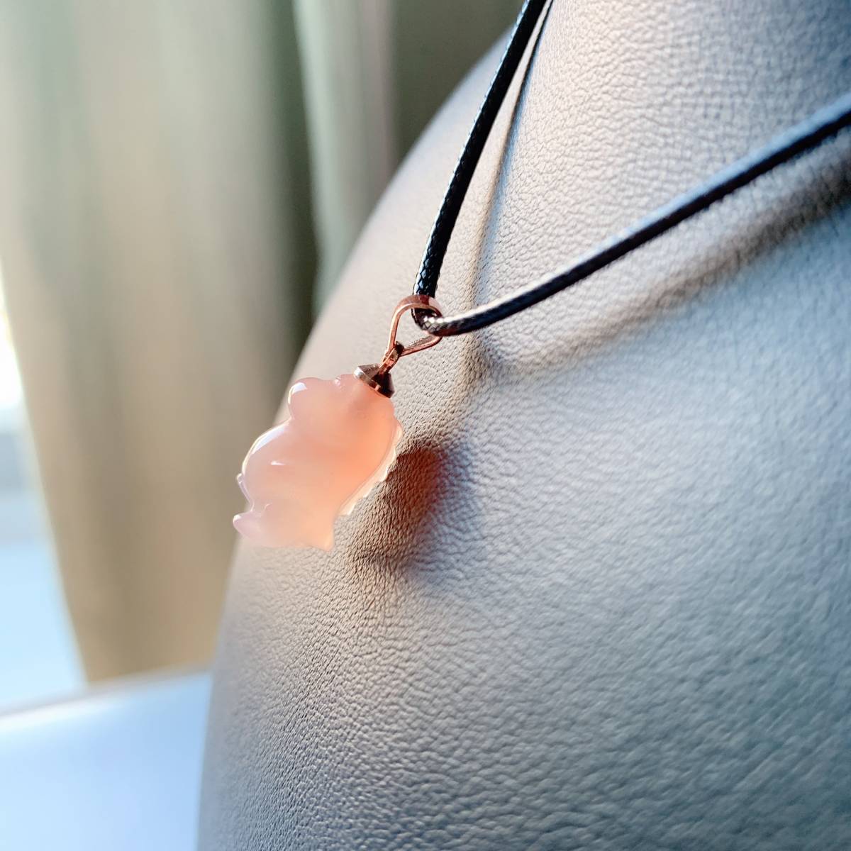◇塩源瑪瑙◇アゲート◇ネックレスペンダント◇可愛い 怪獣形 彫刻◇天然石◇パワーストーン◇巾着袋付き◇プレゼントにも024P92711
