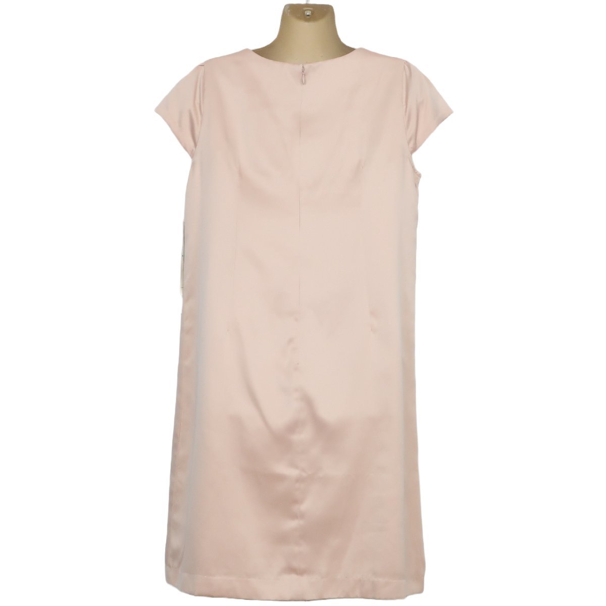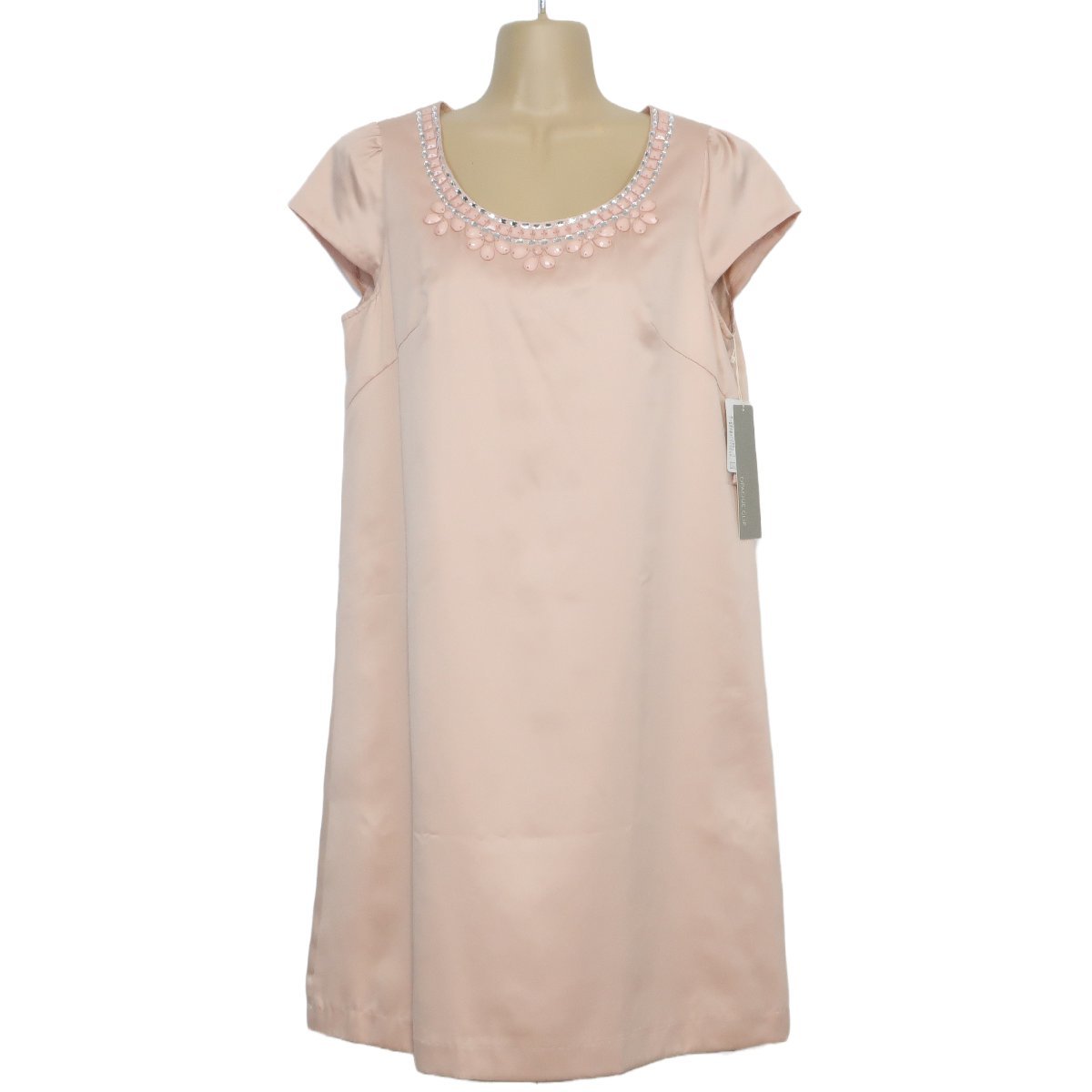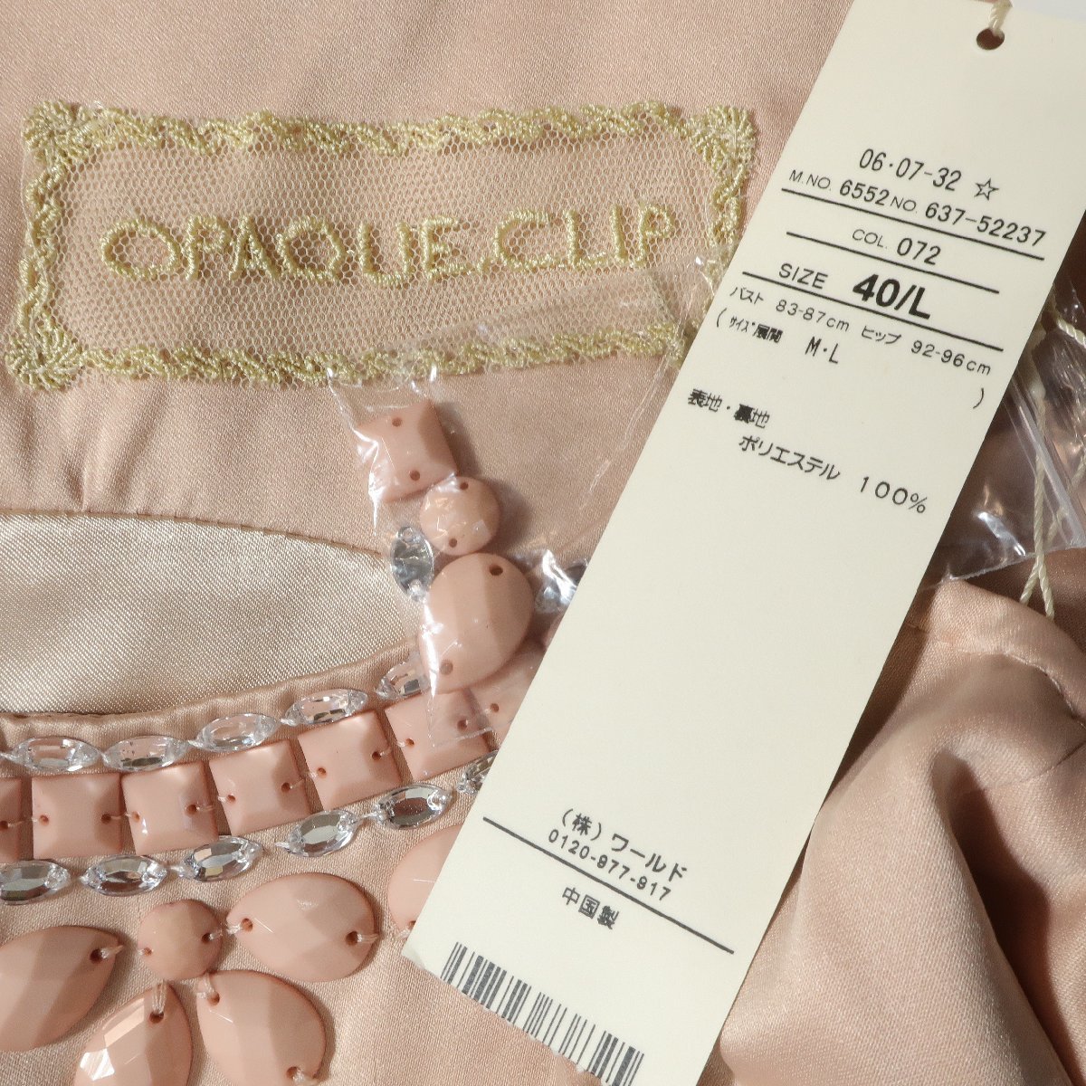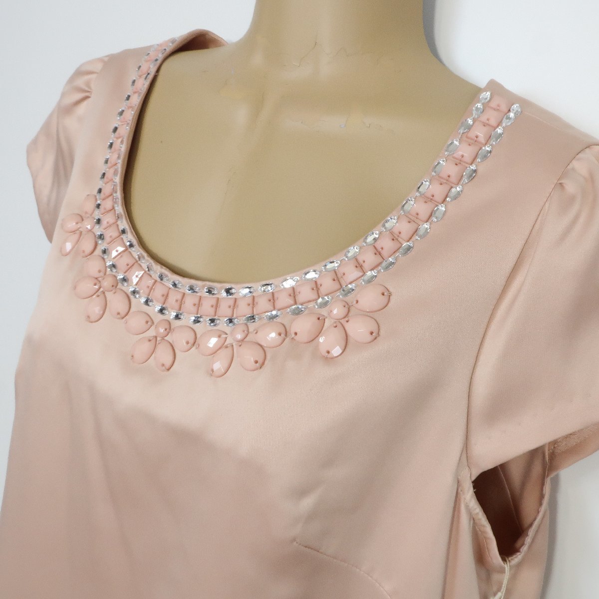 【新品タグ付】オペークドットクリップ★ワンピース 半袖 大きいサイズ40/L ビジュー付き 光沢あり ピンクベージュ系 z3881