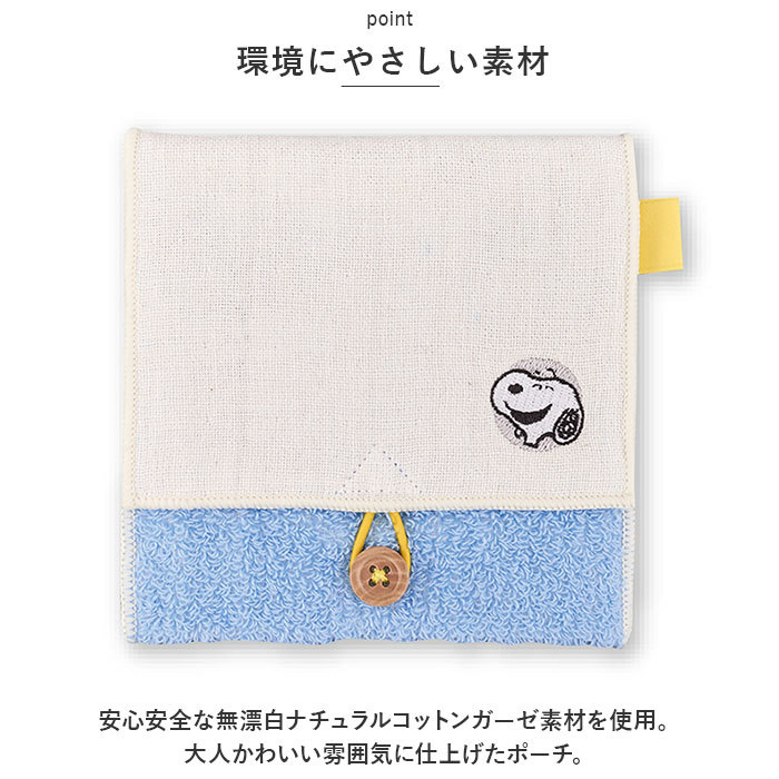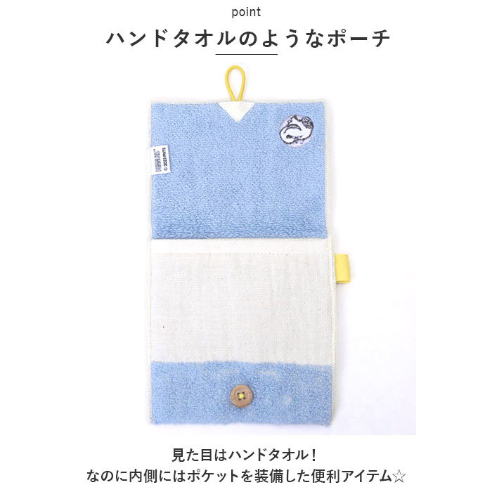 商品説明 | ・・サニタリーグッズをINできる!キャラクターデザインのどっとポーチ(ショート・マルチタイプ)が登場。 ・【ハンドタオルのようなポーチ】 ・見た目はハンドタオル!なのに内側にはポケットを装備した便利アイテム☆ ・【環境にやさしい素材】 ・安心安全な無漂白ナチュラルコットンガーゼ素材を使用。大人かわいい雰囲気に仕上げたポーチ。 ・【隠したいモノをさりげなくカバー】 ・サニタリーグッズなどをサッと忍ばせておける!外出先でお手洗いに行く時にも最適。 ・【小物やベビーグッズも】 ・折りたたんだマスク、リップなどのメイクグッズ、赤ちゃんのおしゃぶりなどを入れることも可能。 ・【可愛らしいキャラクター刺繍入り】 ・前面フラップ部分に可愛らしい刺繍をプラス。お気に入りのキャラクターと楽しくお出かけ♪ |