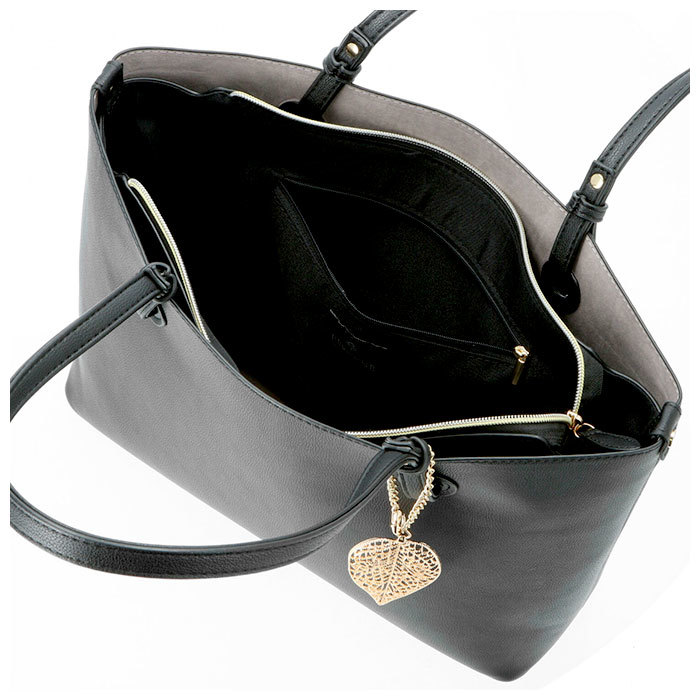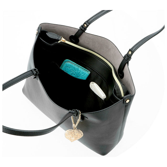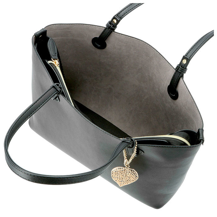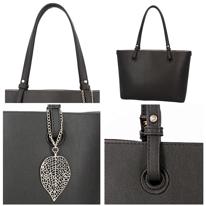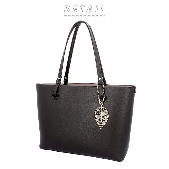 | 商品説明 | ・・シボ感のある上質なフェイクレザーをボディ全面に使用!リッチで大人っぽい雰囲気に仕上げたPERENNE レディースバッグ。 ・荷物を仕分けしやすい両あおり仕様。A4サイズの書類がすっぽり入るので、通勤・通学用バッグにオススメ! ・中央のメイン収納はファスナー式なので、中身が見える心配がなく電車内でも安心。内側にファスナーポケット付き。 ・前後の収納ルームはオープン式なので、荷物の出し入れがしやすい◎前面ルームには小物収納に便利なオープンポケット×2付き。 ・長めに仕上げた持ち手ハンドルは、スマートに肩掛けができる。 ・底鋲付きでしっかり自立するので、オフィスでの使い勝手も抜群! ・シンプルなデザインのバッグに、ゴールドのリーフチャームがアクセント♪ |