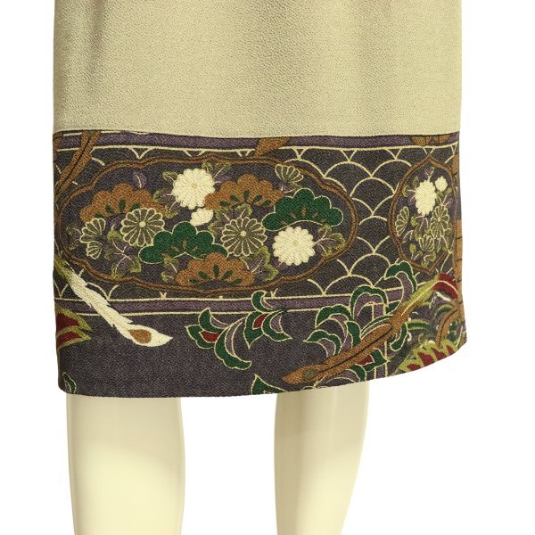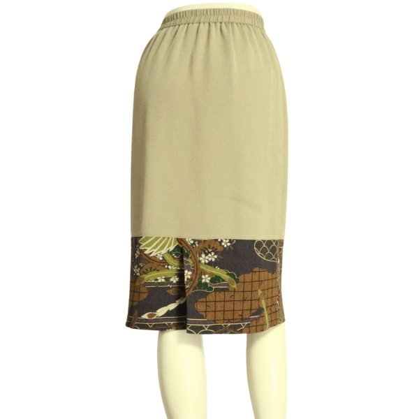 商品詳細 | NO-A4942 ★【ブランド】 *詩仙堂 by HITOSHI 日本製 ★【特徴】 *女性らしいベージュを中心に裾の和柄デザインに目を惹く美的タイトスカートです。 さらりと程よくしなやかな、手触りの良い上質な高級ちりめん素材。 ウエスト部分はゆったりとお召し頂ける総ゴム仕立て。 スラっと綺麗な美脚シルエットを演出する大人タイトスカート、是非いかがでしょうか♪ ※こちらは気持ち良くお召しいただく為に、高級クリーニングをお掛けしてからお届けいたします。 発送まで4営業日ほどいただきますことご了承ください。 ・裏地○ ・伸縮性○ ・ポケット× ・季節性 春夏秋向け ※状態につきましては当社基準のランク表も合わせてご参考下さい。 | ||||||||||